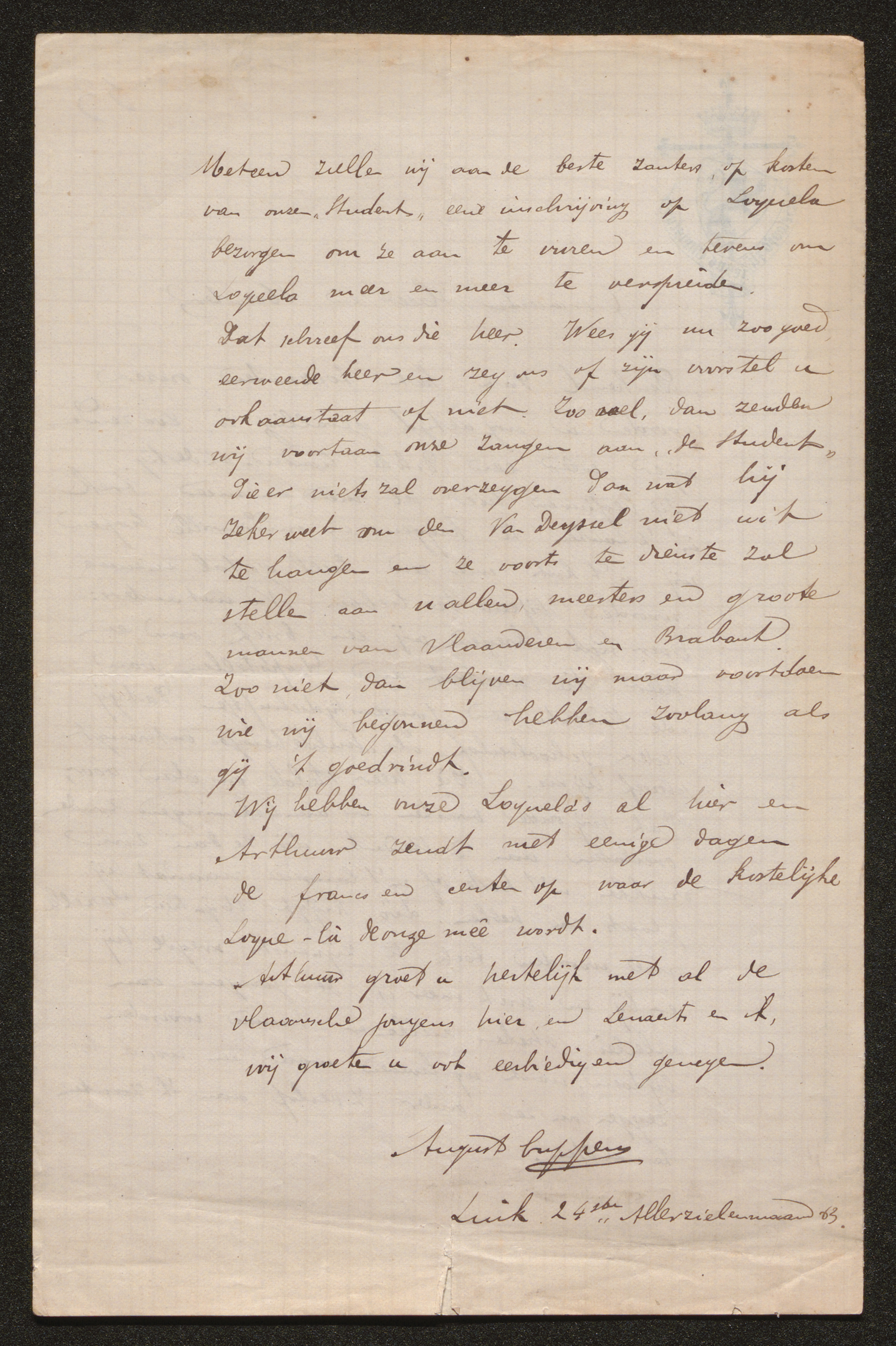 CiterenMiet Hubrechts; Universiteit Antwerpen, Cuppens August en Lenaerts Leonard Willem Jakob aan Gezelle Guido, Luik, 24/11/1883. In: GezelleBrOn, Wetenschappelijke editie van de correspondentie van Guido Gezelle. 2026 Available from World Wide Web: link .