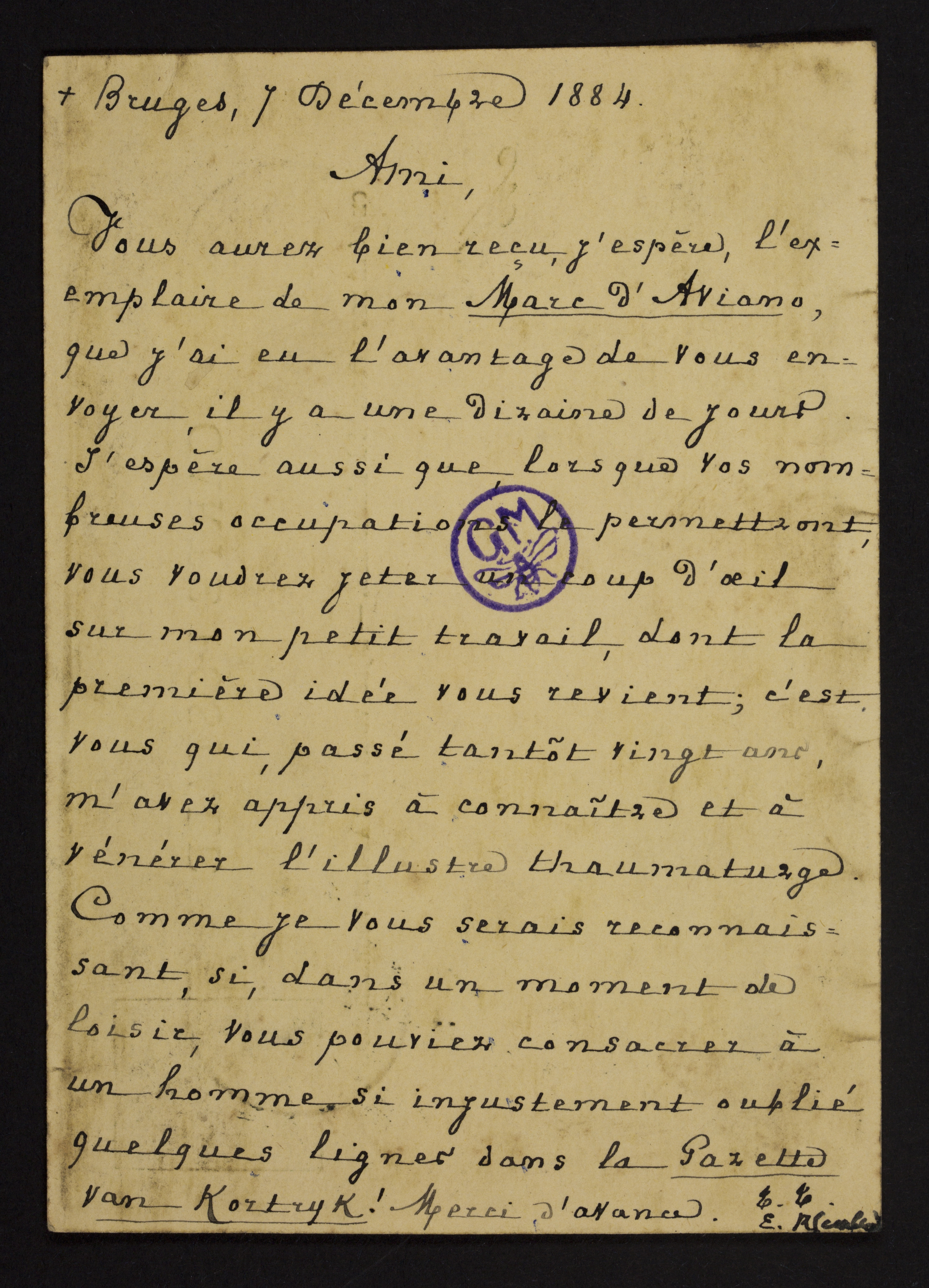 Titel07/12/1884, Brugge, [Ernest Rembry] aan Guido Gezelle