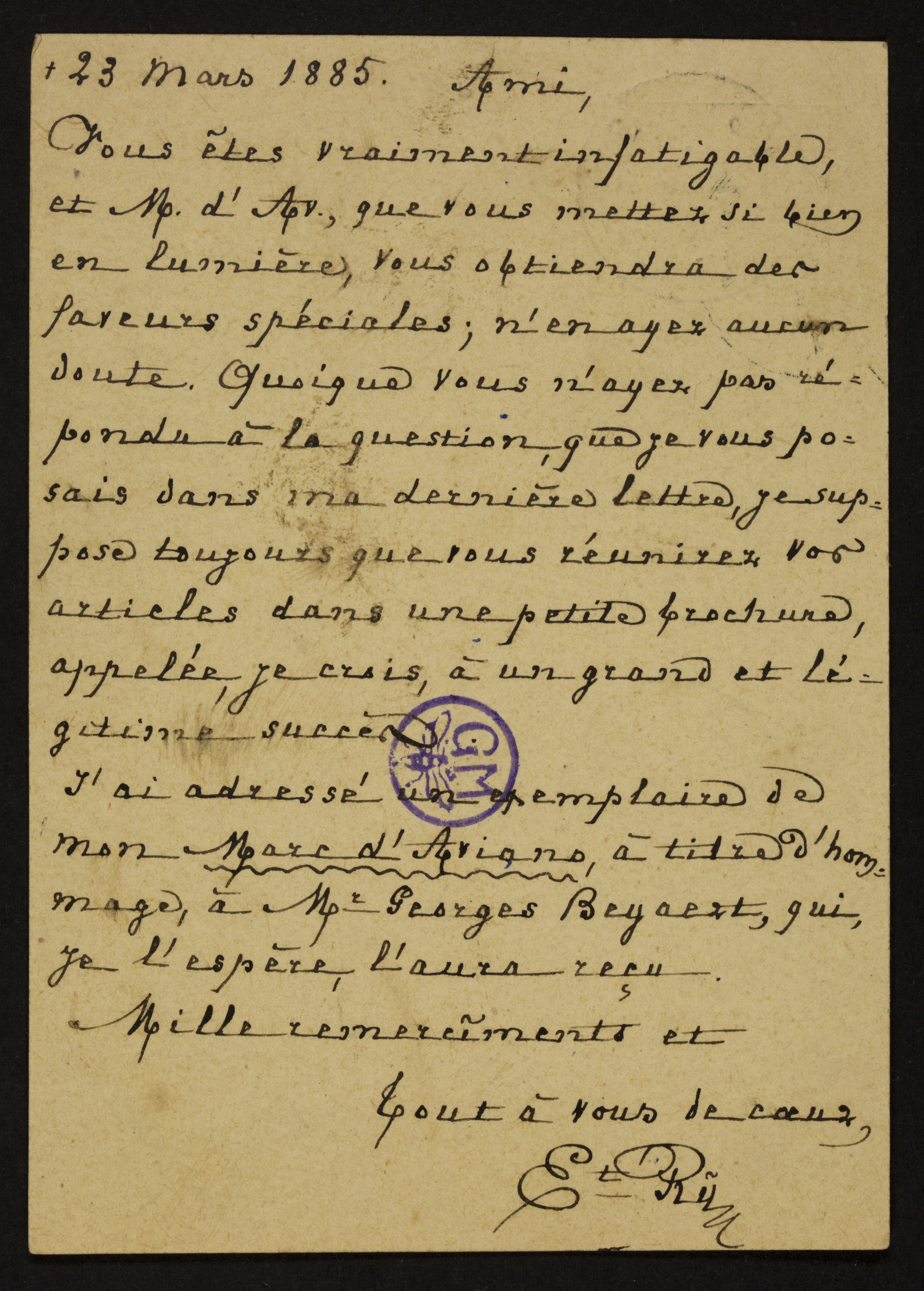 Titel23/03/1885, Brugge, Ernest Rembry aan Guido Gezelle