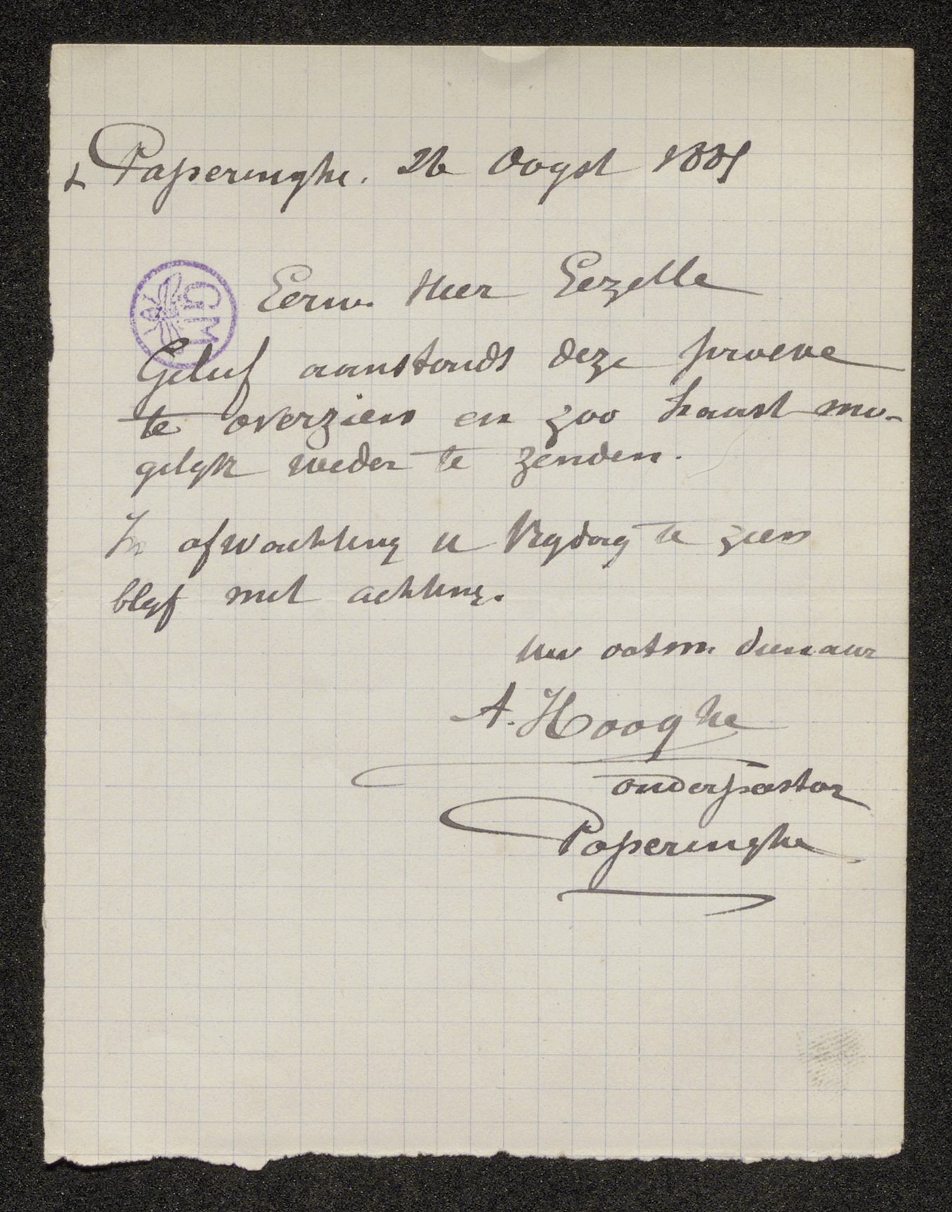 Poperinghe, 26 Oogst 1885