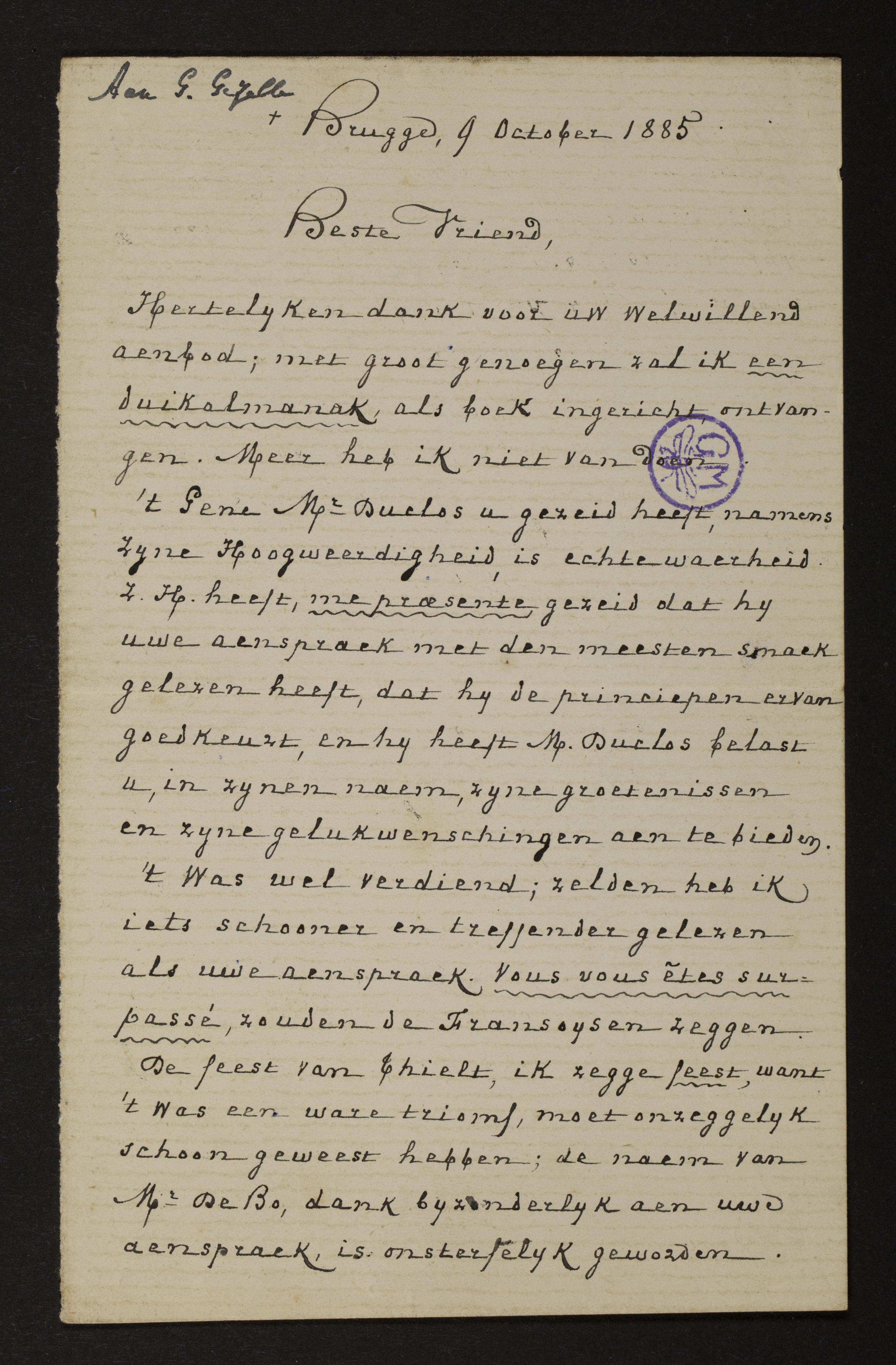 Title09/10/1885, Brugge, Ernest Rembry aan [Guido Gezelle]