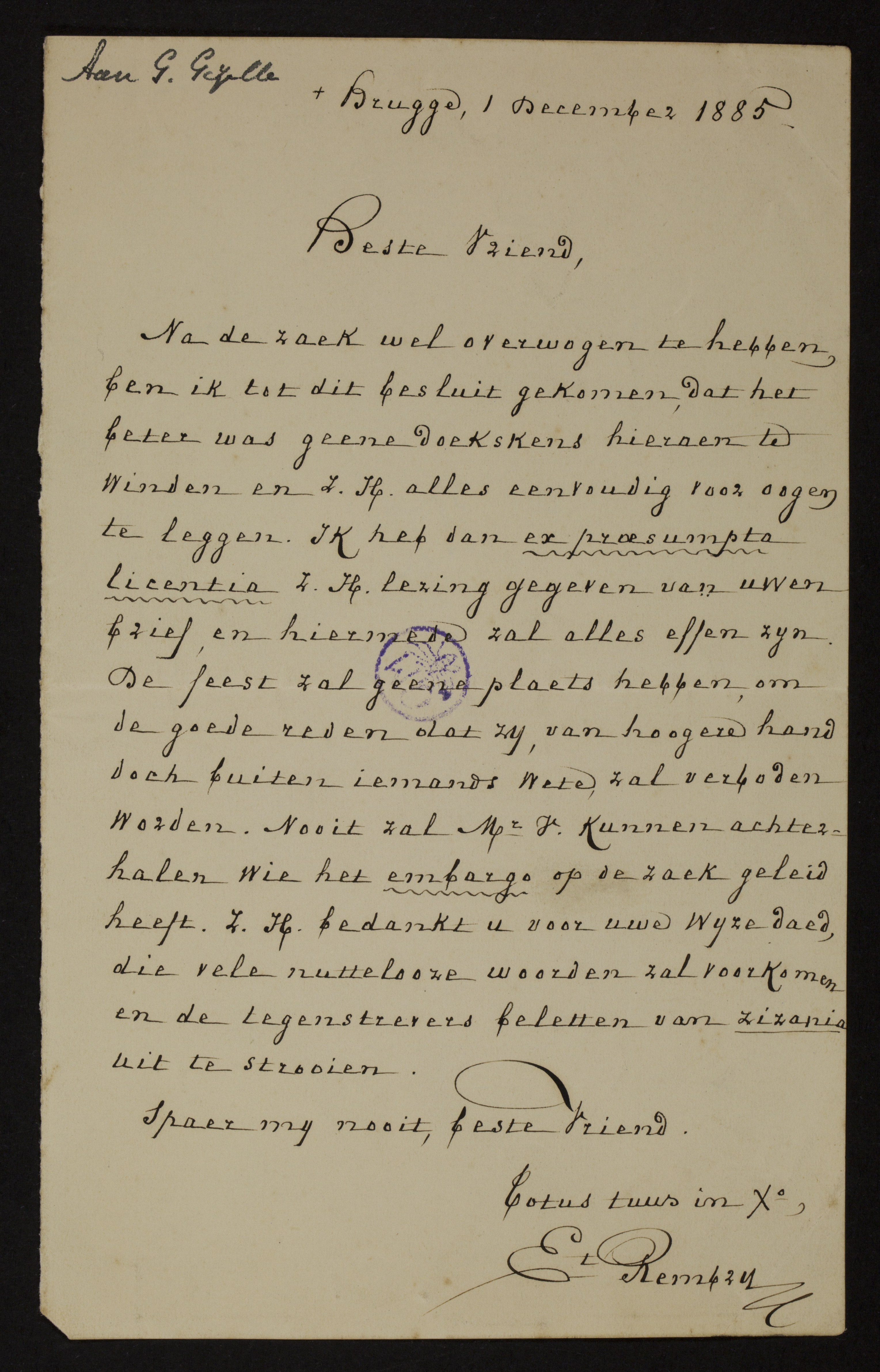 Brugge, 1 December 1885.