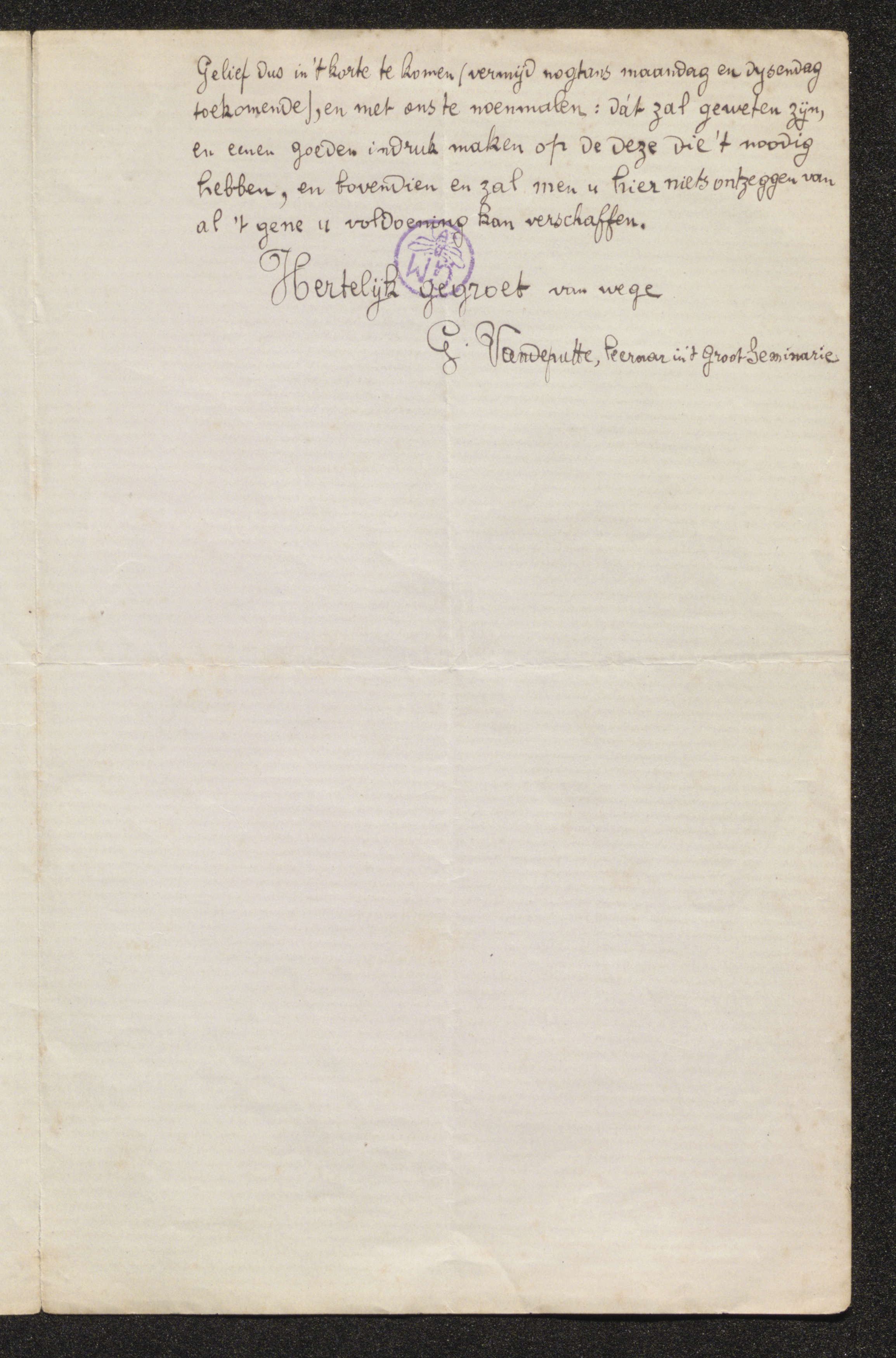 G. Vandeputte, leeraar in ‘t Groot Seminarie