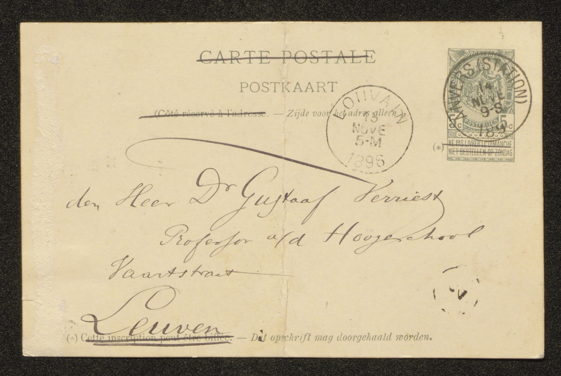 Lay-out de briefkaart is een bijlage bij de brief van Gustaaf Verriest aan Gezelle van 20/11/1896
