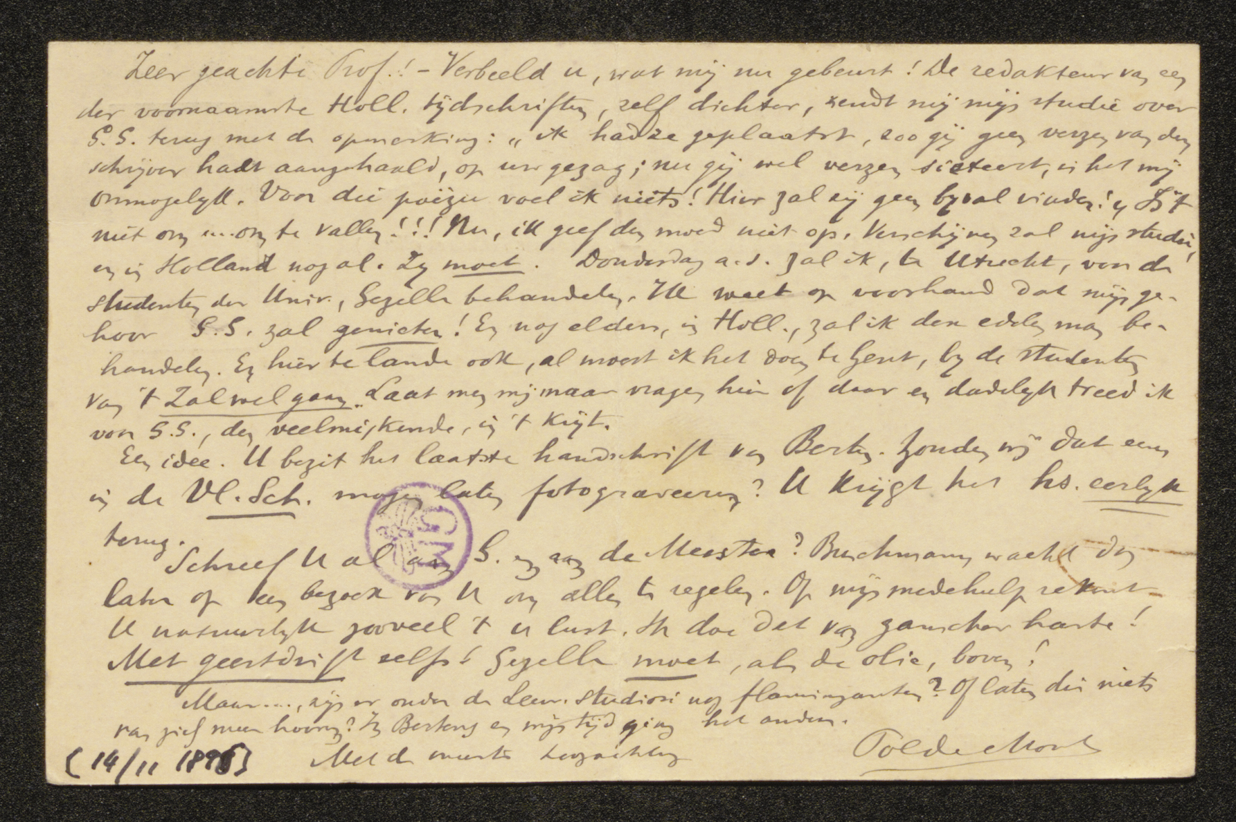 Title[14/11/1896], Antwerpen, Pol De Mont aan Gustaaf Verriest