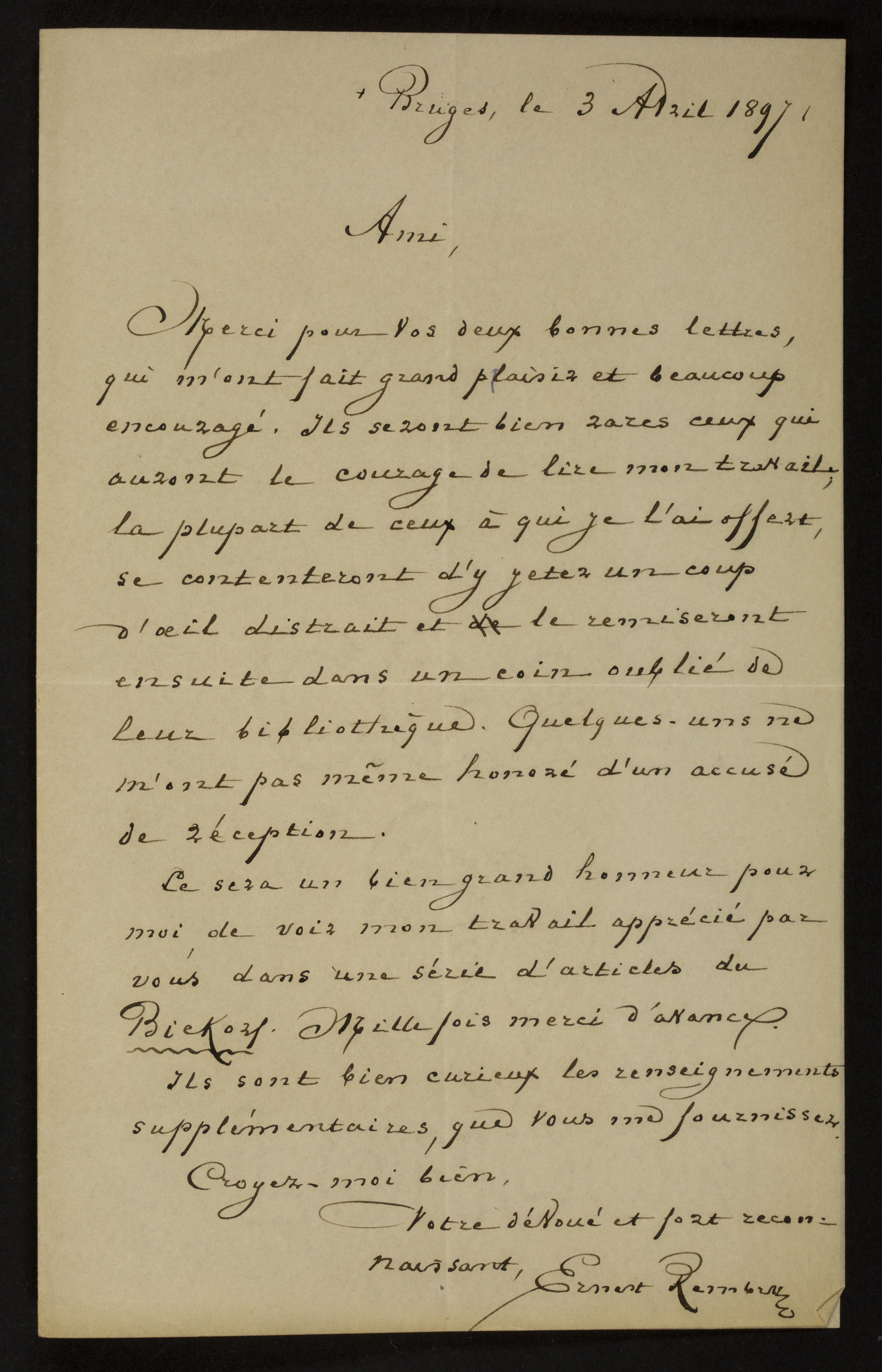 Titel03/04/1897, Brugge, Ernest Rembry aan [Guido Gezelle]