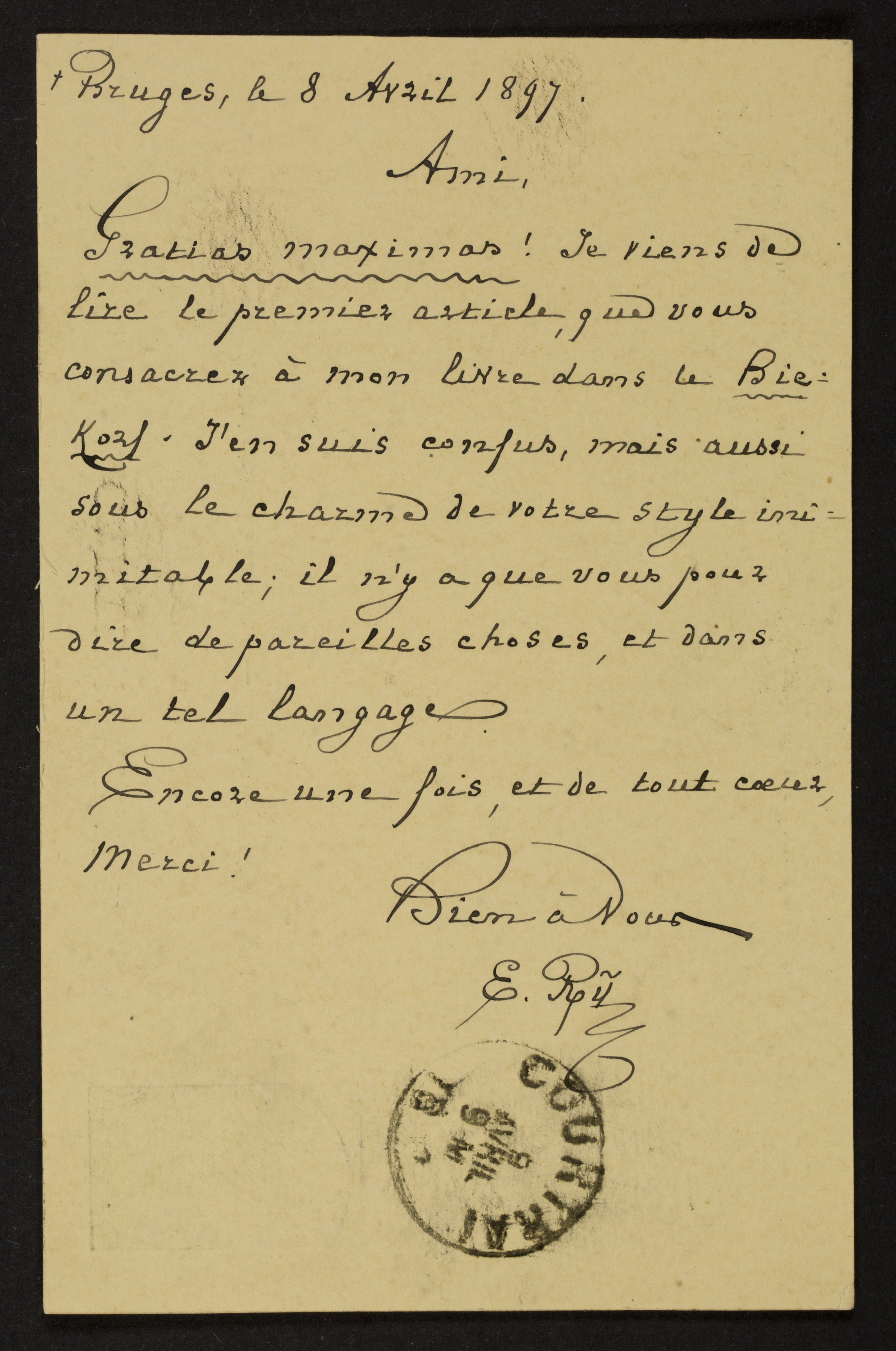 Titel08/04/1897, Brugge, Ernest Rembry aan Guido Gezelle