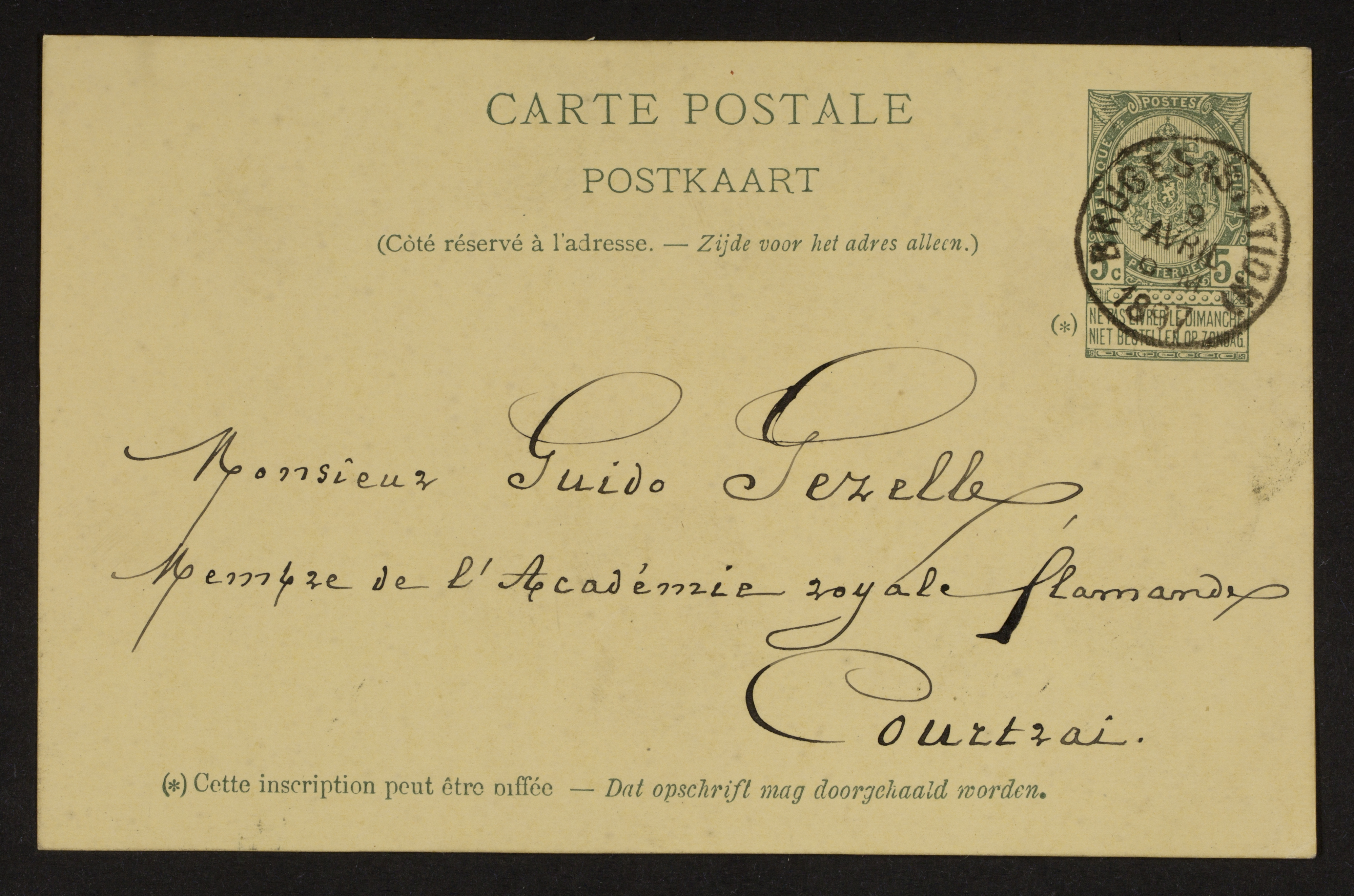 DisclaimerDe editie van de Guido Gezellecorrespondentie is het resultaat van een samenwerkingsproject met vrijwilligers. De databank is in opbouw, aanvullingen en opmerkingen kunnen gemeld worden aan els.depuydt@brugge.be.