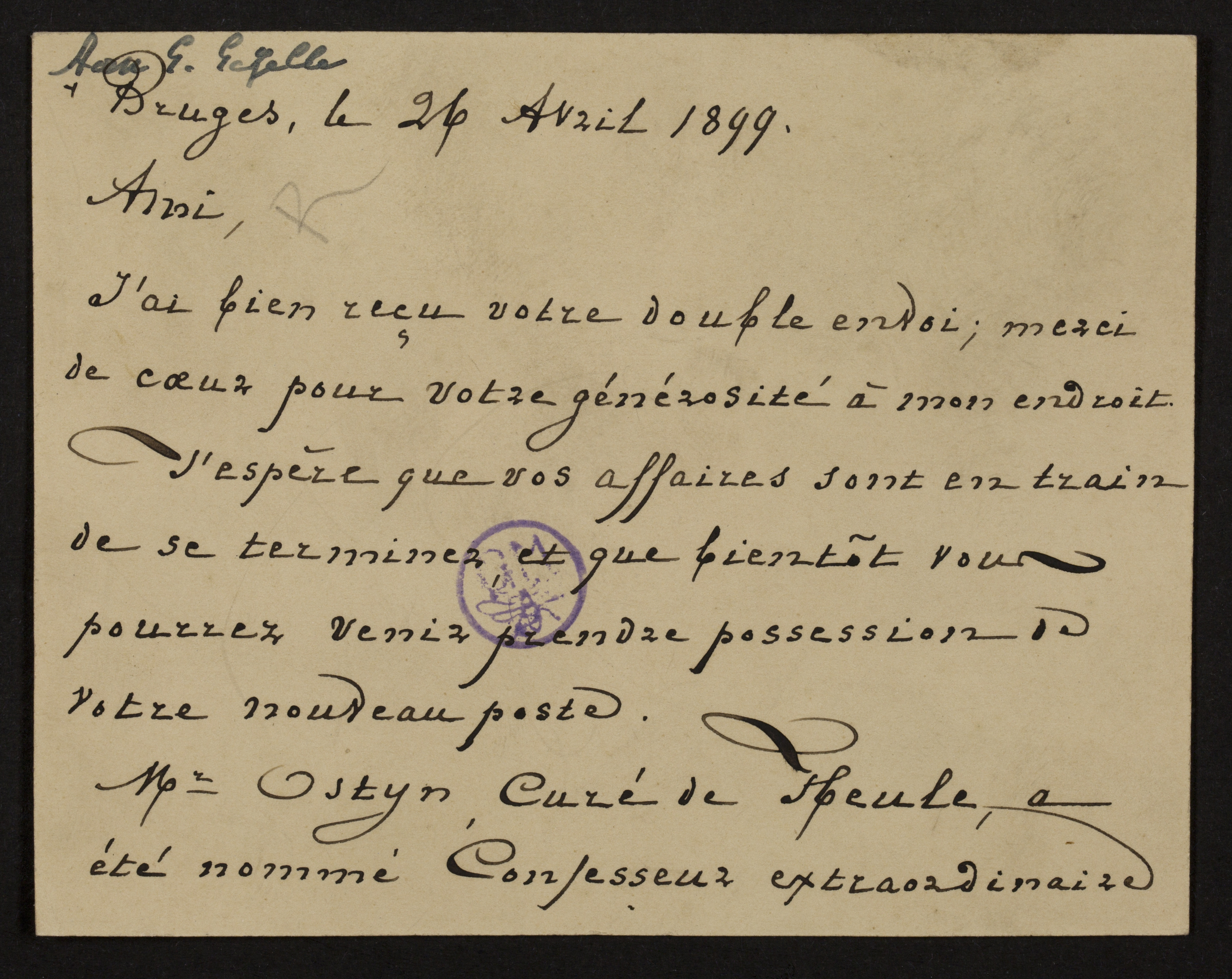 Bruges, le 26 Avril 1899.
