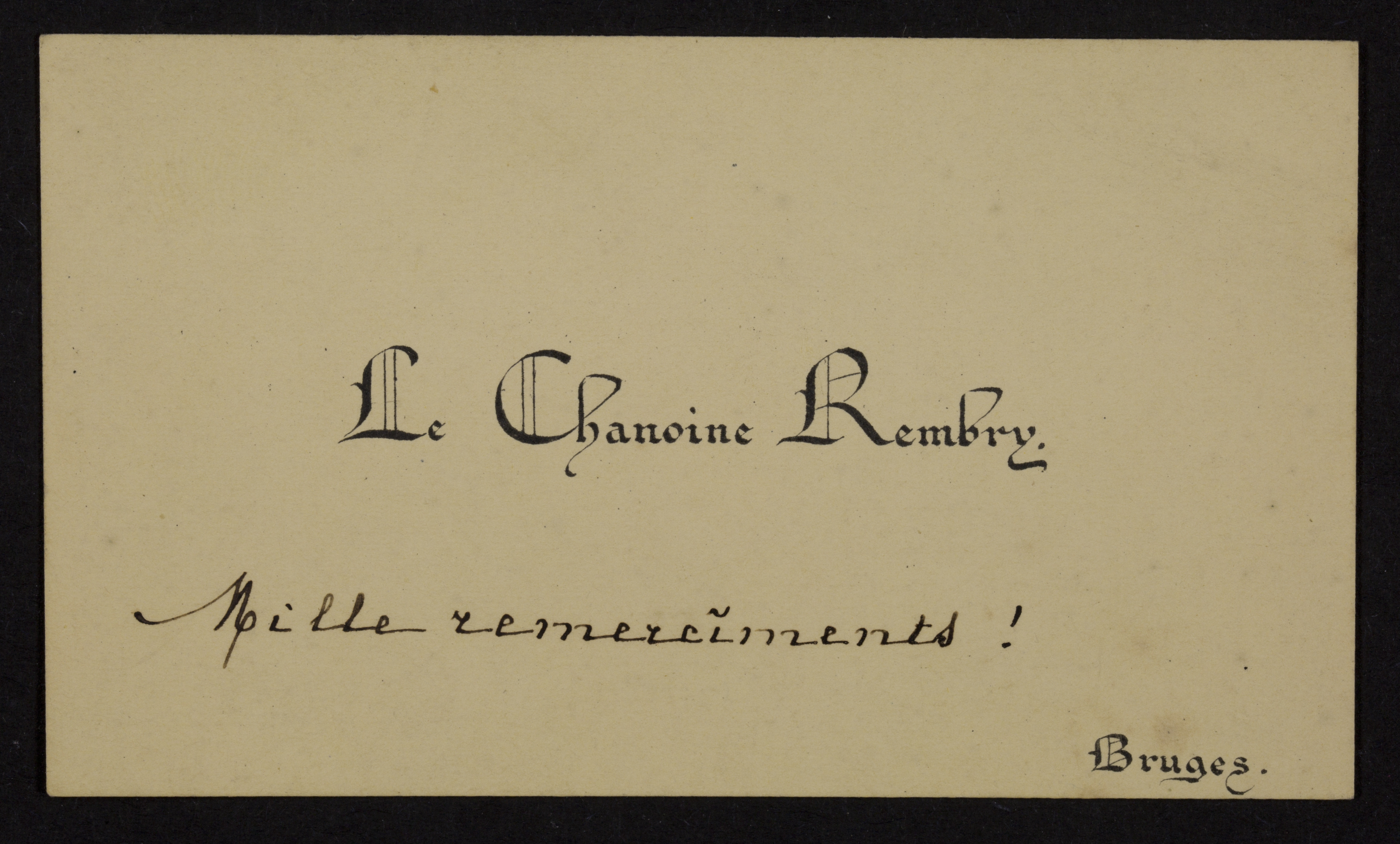 Vormelijke bijzonderheden op recto: naam en titel in het midden: Le Chanoine Rembry.