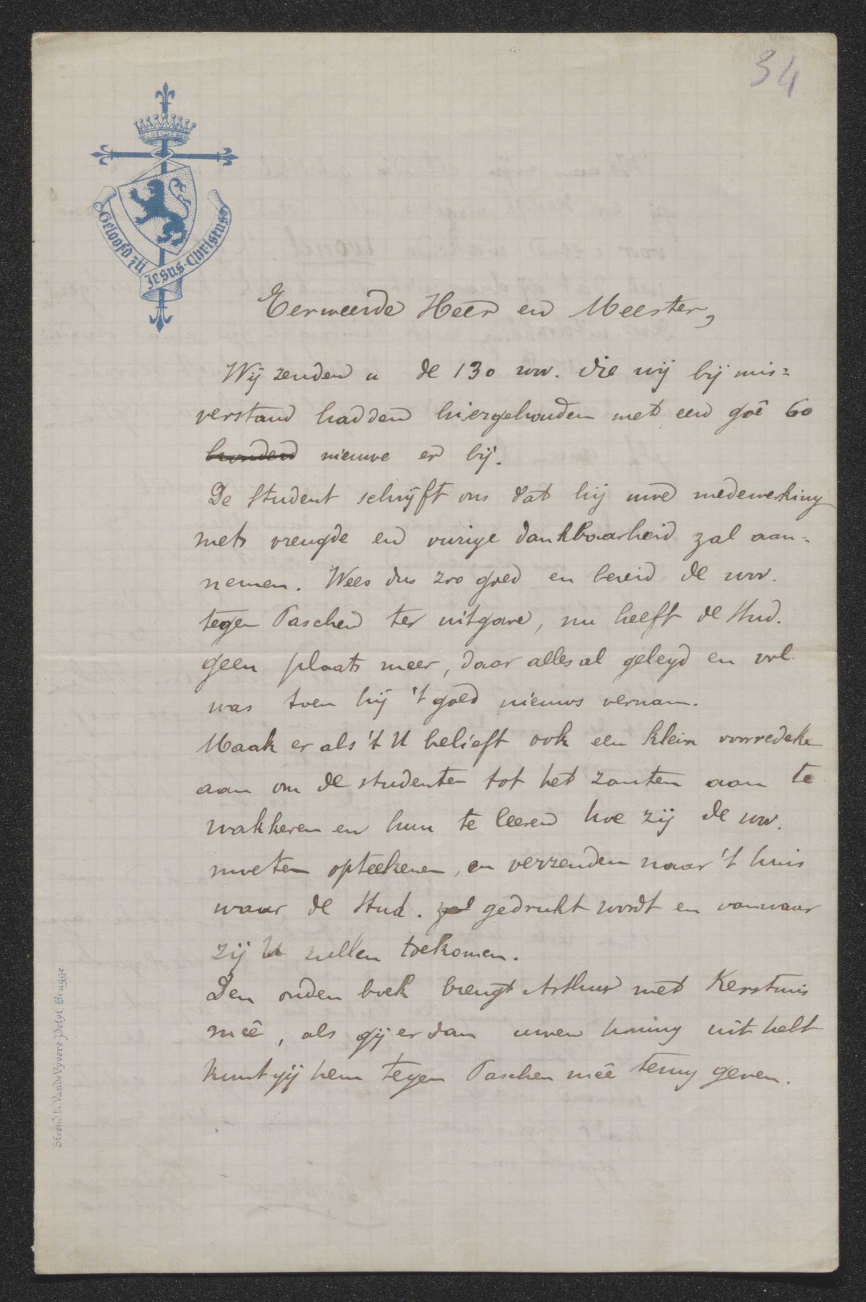De Student schrijft ons dat hij uwe medewerking met vreugde en vurige dankbaarheid zal aannemen. Wees dus zoo goed en bereid de woorden en wendingen tegen Paschen[1] ter uitgave, nu heeft de Student geen plaats meer, daar alles al gelegd en vol was toe hij 't goed nieuws vernam.