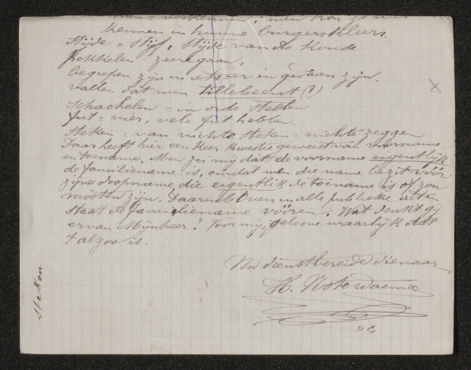 steken = van nichte steken = nichte zeggen[7]