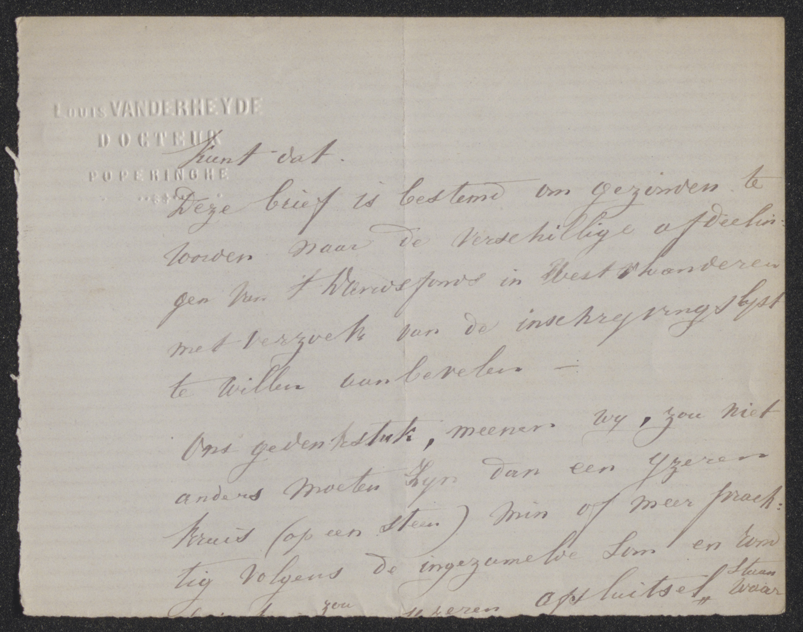 Deze brief[1] is bestemd om gezinden te worden naar de verschillige afdeelingen van ‘t Davidsfonds in West Vlaanderen met verzoek van de inschryvingslyst[2] te willen aanbevelen -