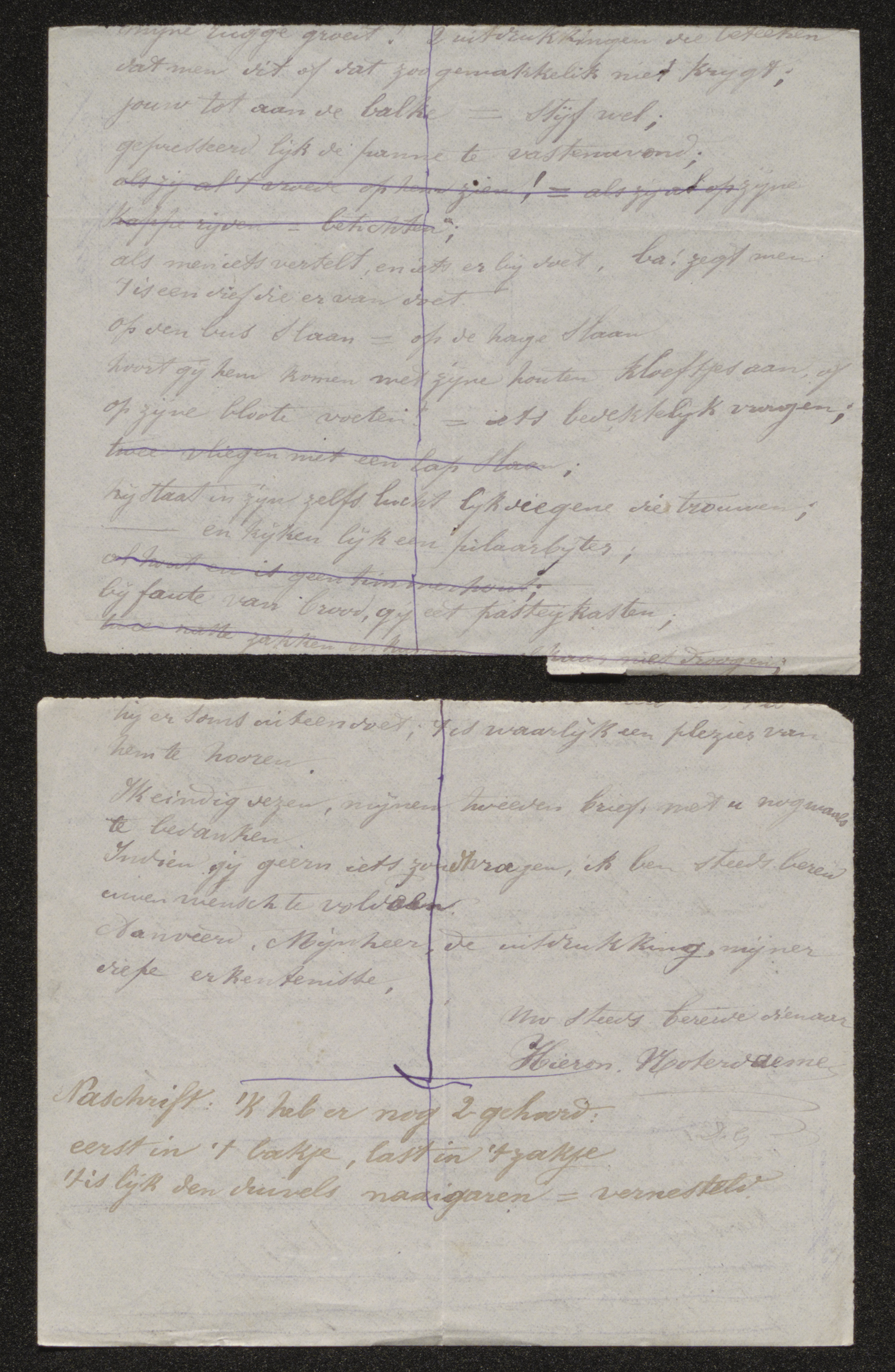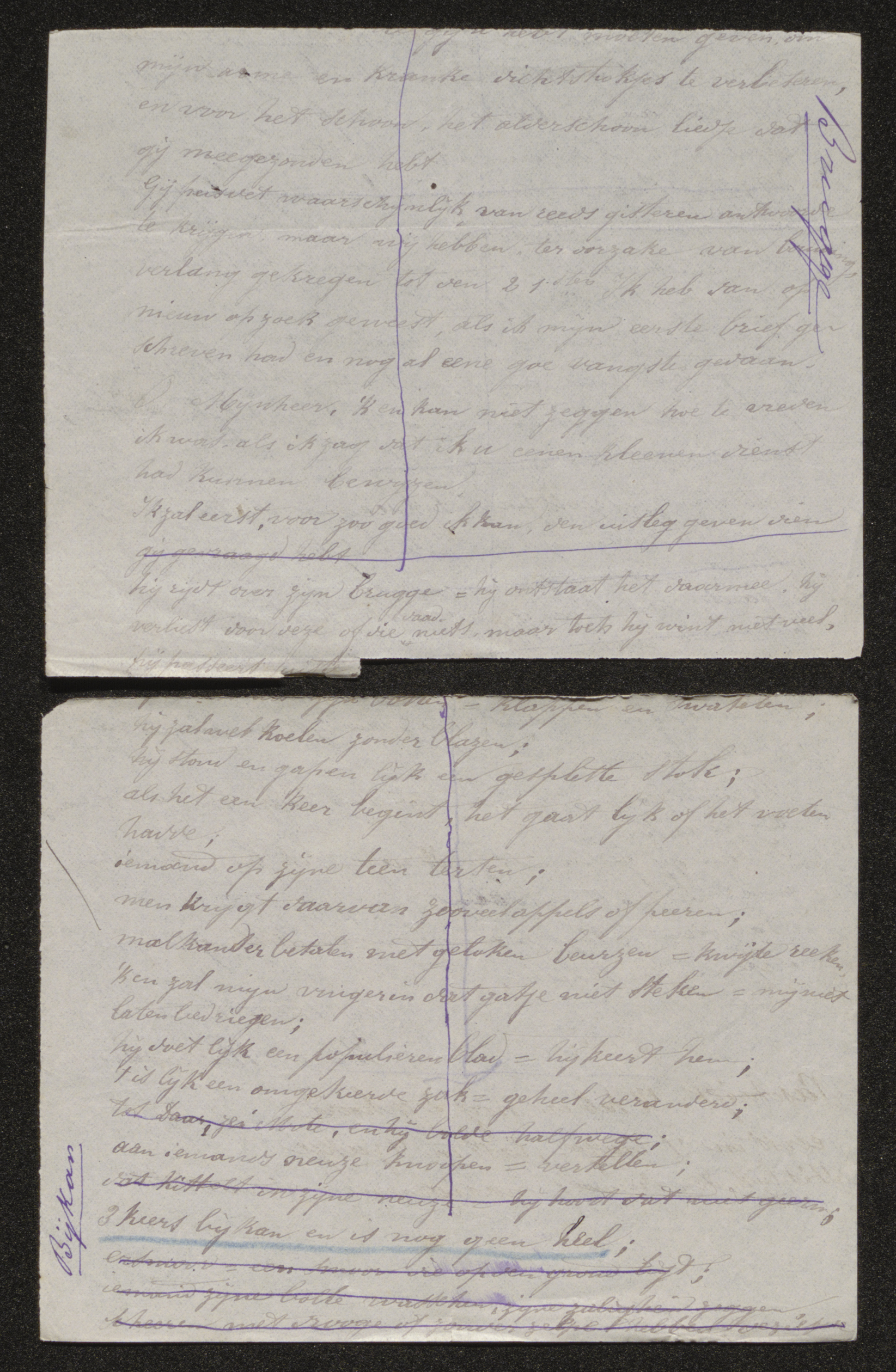 [11] Onderstreping van Guido Gezelle in blauw potlood als aanduiding om deze spreuk in de Woordentas op te nemen. Gezelle maakte van deze brief een fiche met als lemma ’Bijkan’.