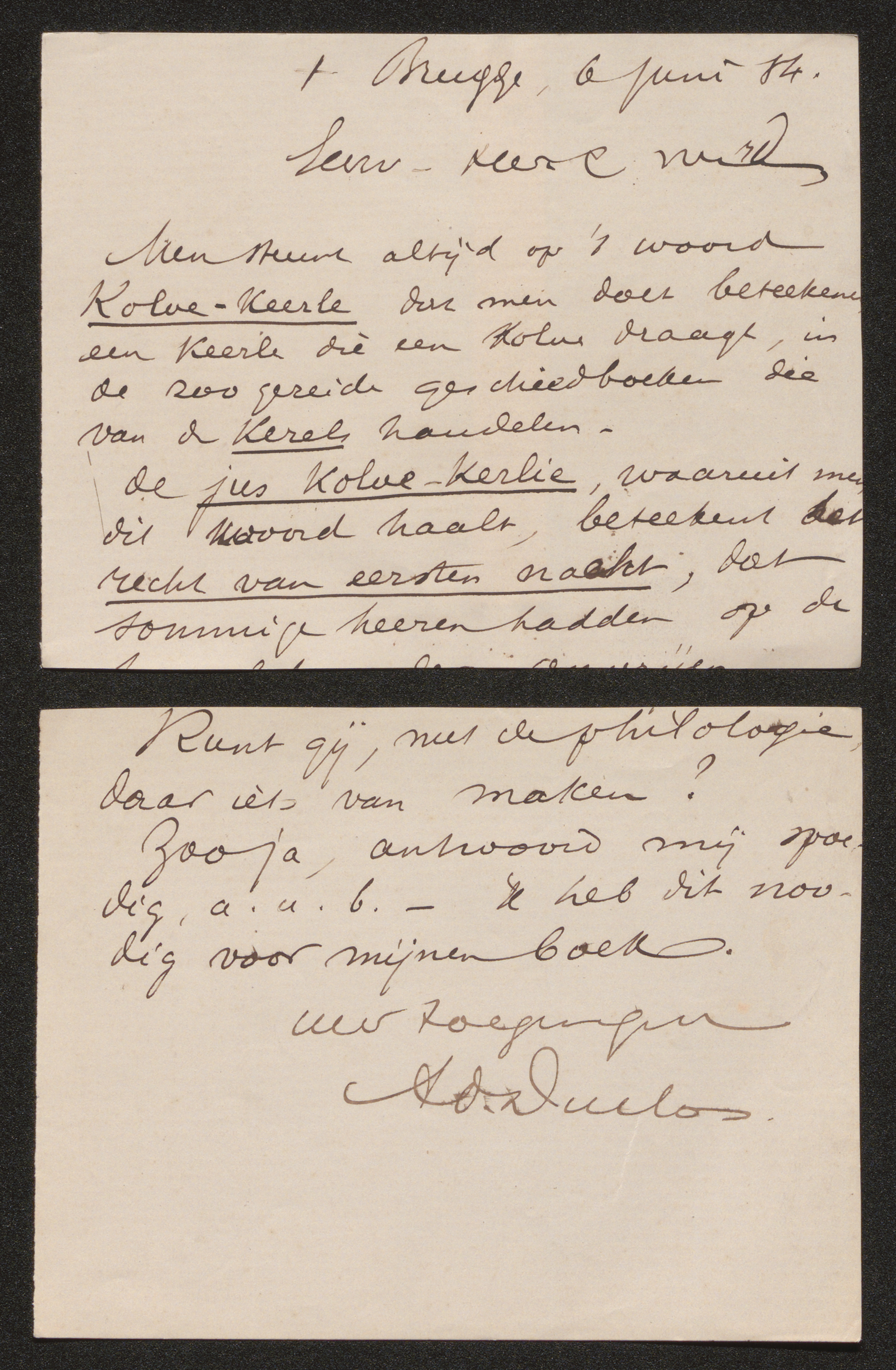 Zoo ja, antwoord mij spoedig, a.u.b. - 'k heb dit noodig voor mijnen boek.
