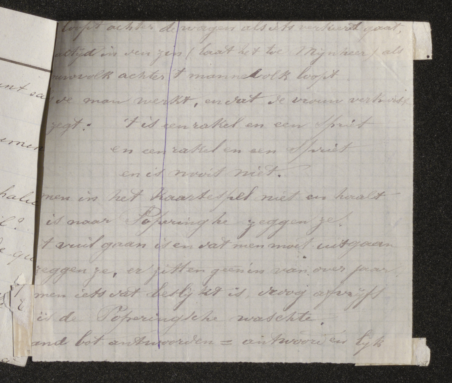 Toen ik U over omtrent veertien dagen bezocht heb ten uwen huize, vroegt gij mij of ik en zou willen eenige uitdrukkingen van deze streeke . ‘k Heb alles uitgesn en afgeloerd en er toch maar weinig die eentwat weerd zijn. Ware ik zeker dat gij ze nog nooit en gehoord en hebt, ‘k zou ze liever schrijven, maar ik ben, om
