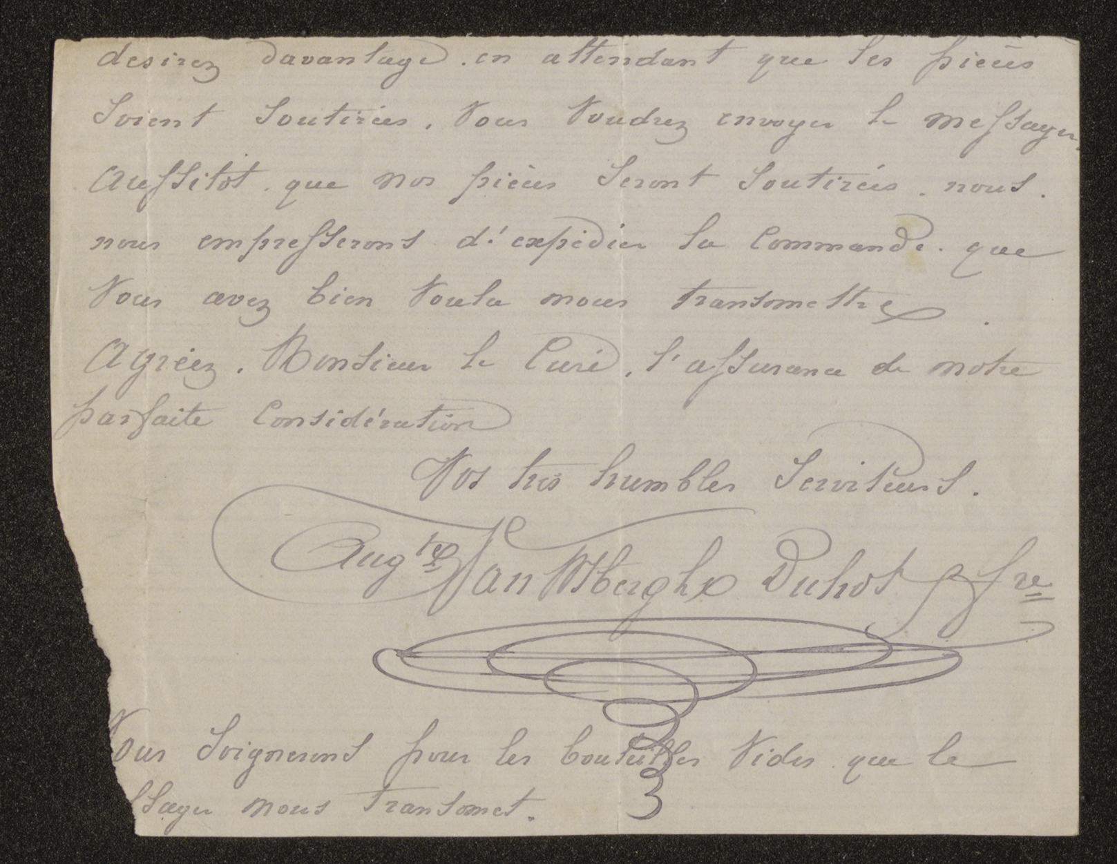 Agréez, Monsieur le Curé, l’assurance de notre parfaite considération