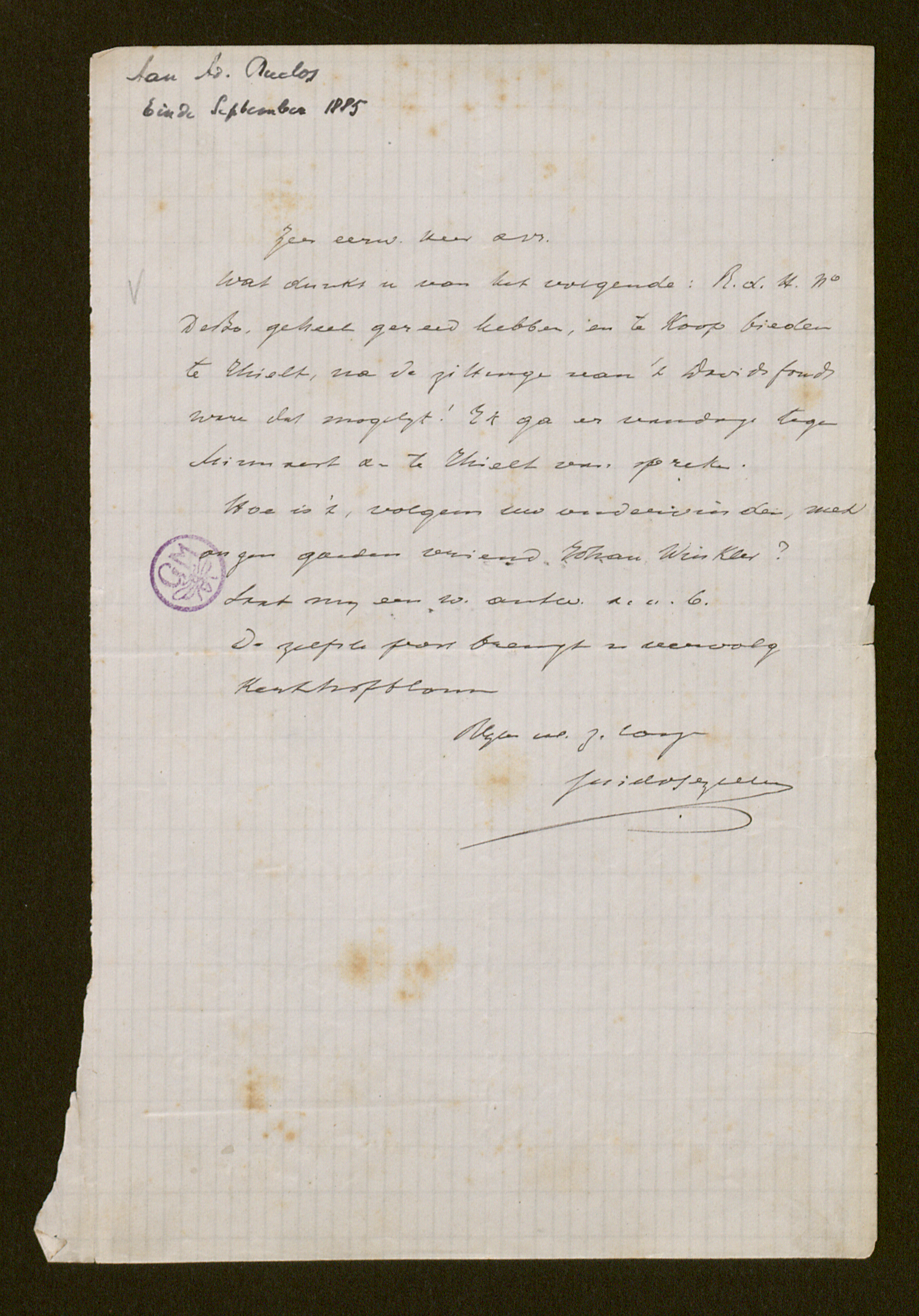 Wat dunkt u van het volgende: R. d. H. N° De Bo, geheel gereed hebben, en te koop bieden te Thielt, na de zittinge van 't Davidsfonds ware dat mogelyk! Ik ga er vandage tegen Minnaert en te Thielt van spreken.