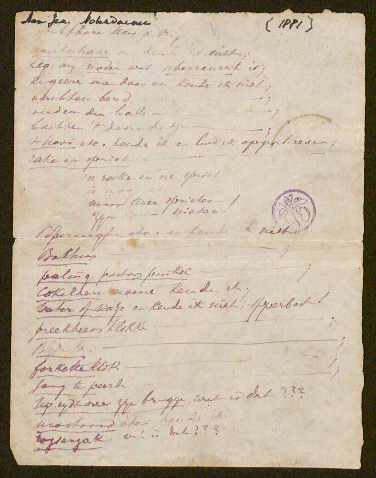[1] J. Noterdaeme stuurde zijn eerste brief naar Gezelle op 09/03/1881, dit na een huisbezoek bij Gezelle waarbij die hem vroeg om woorden te verzamelen uit zijn streek. Gezelle reageert in deze brief op woorden die Jerome Noterdaeme hem in zijn eerste brief stuurde.