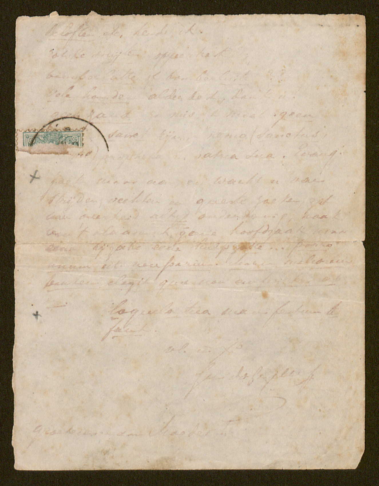 Vormelijke bijzonderheden op zijde 2: stukje van poststempel en stukje van opgekleefde postzegel