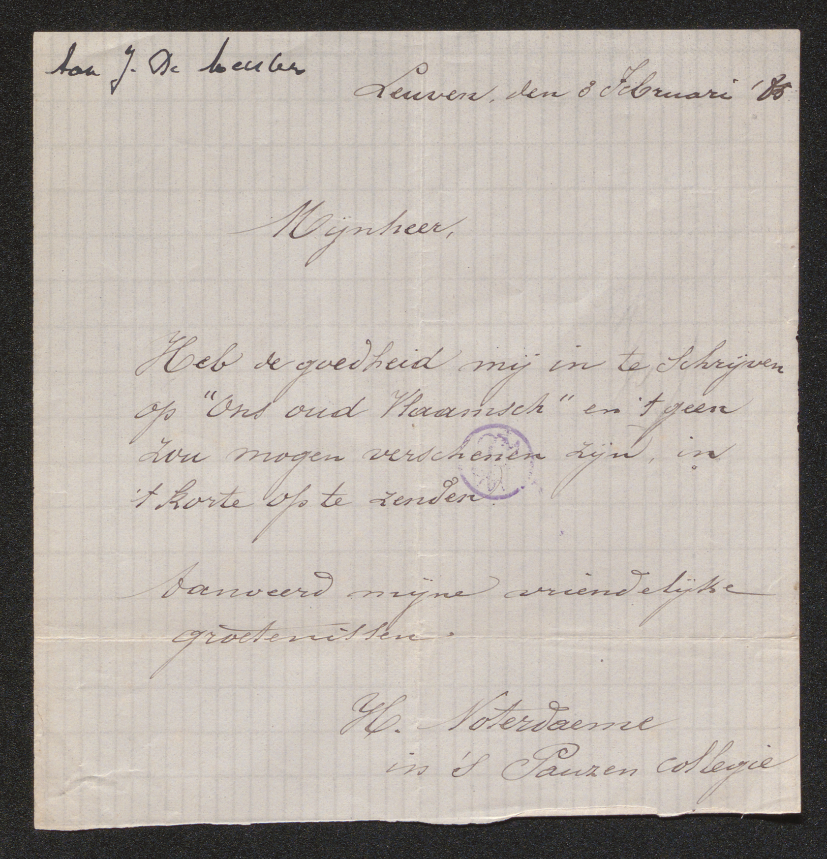 Heb de goedheid mij in te schrijven op “Ons oud Vlaamsch” en ‘t geen zou mogen verschenen zijn in ‘t korte op te zenden.