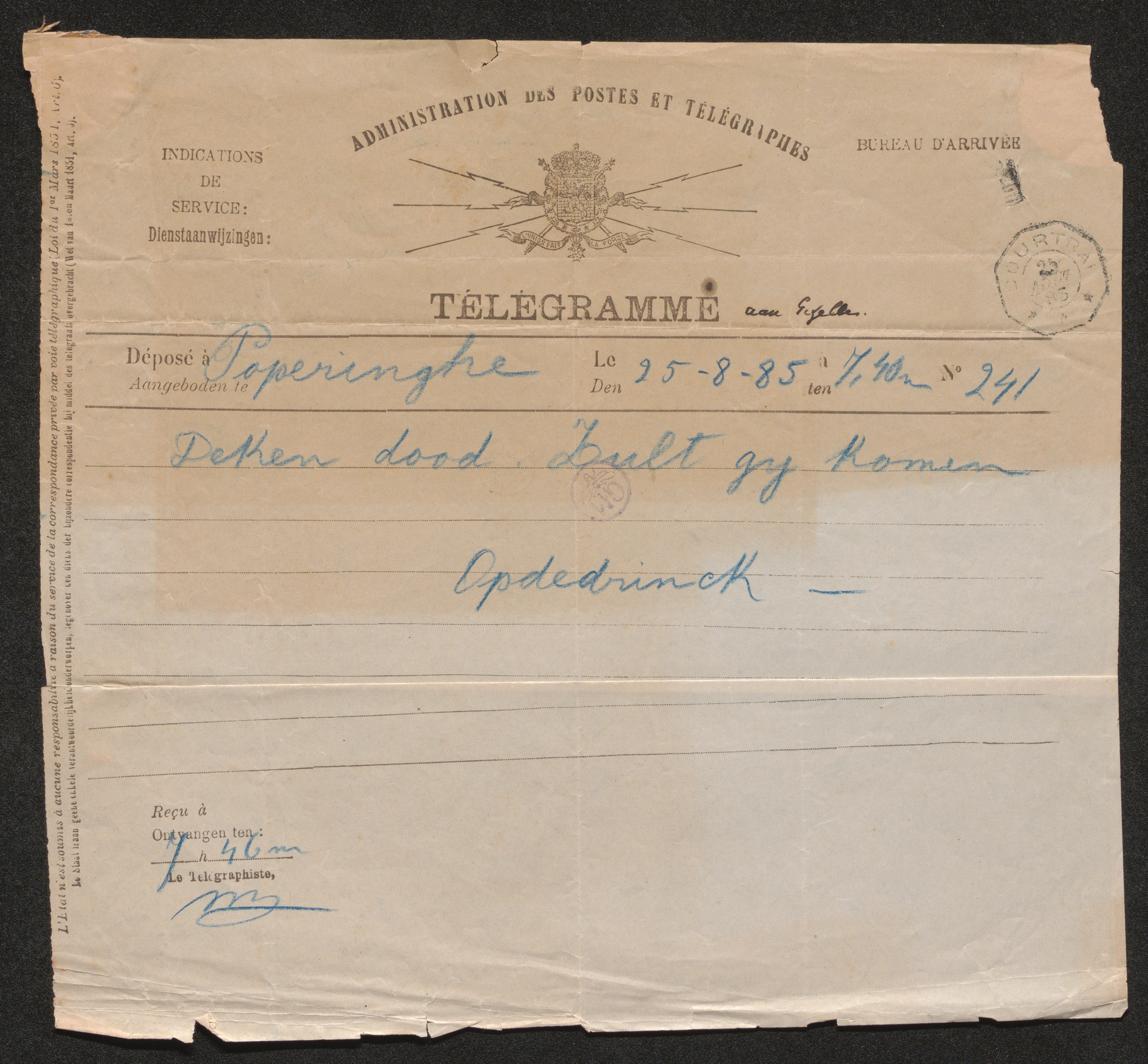 Titel25/08/1885, Poperinge, Juliaan Frans Opdedrinck aan Guido Gezelle