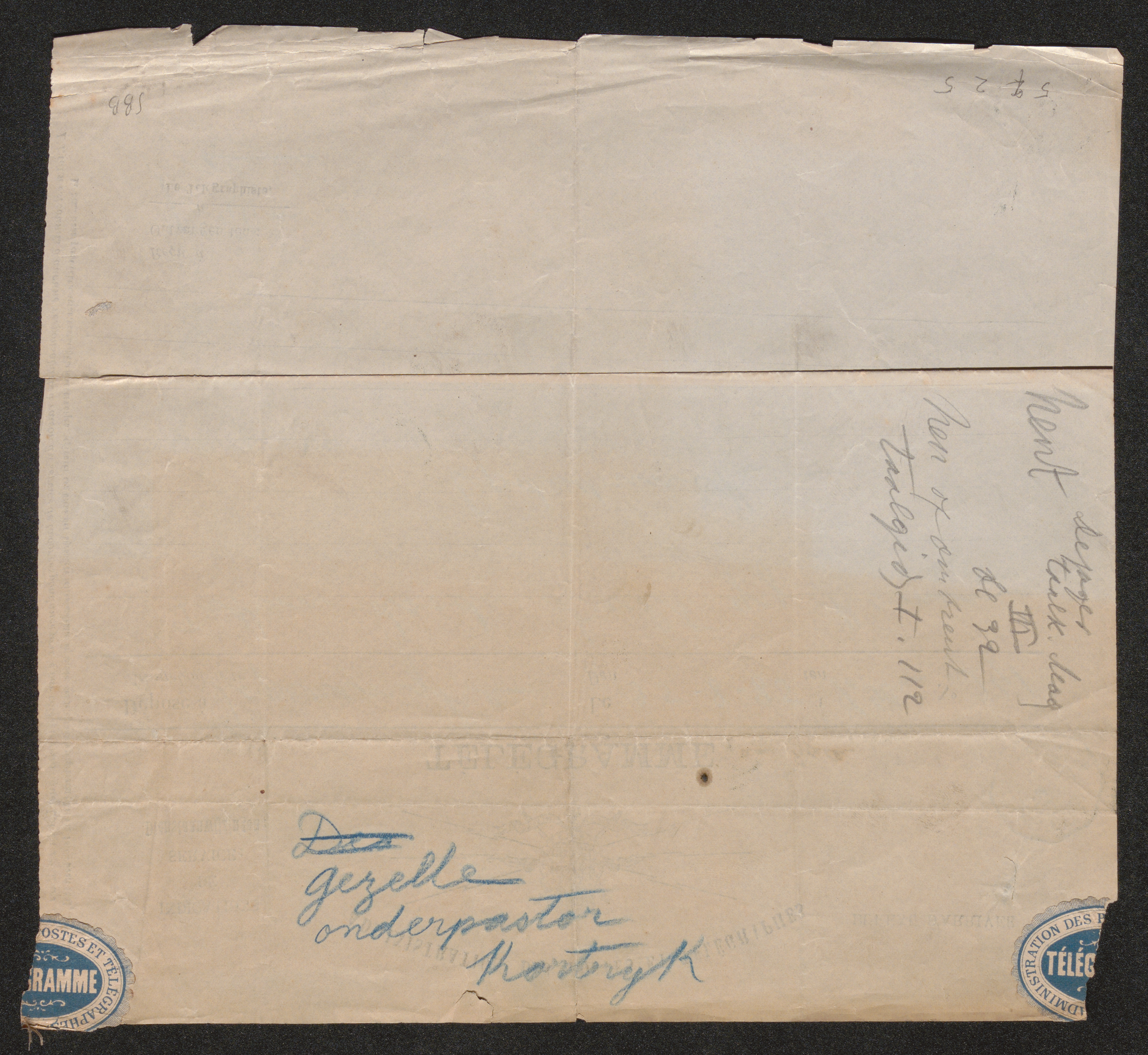 papiersoort: 1 zijde beschreven; zijde 2 met adres, potlood, blauw