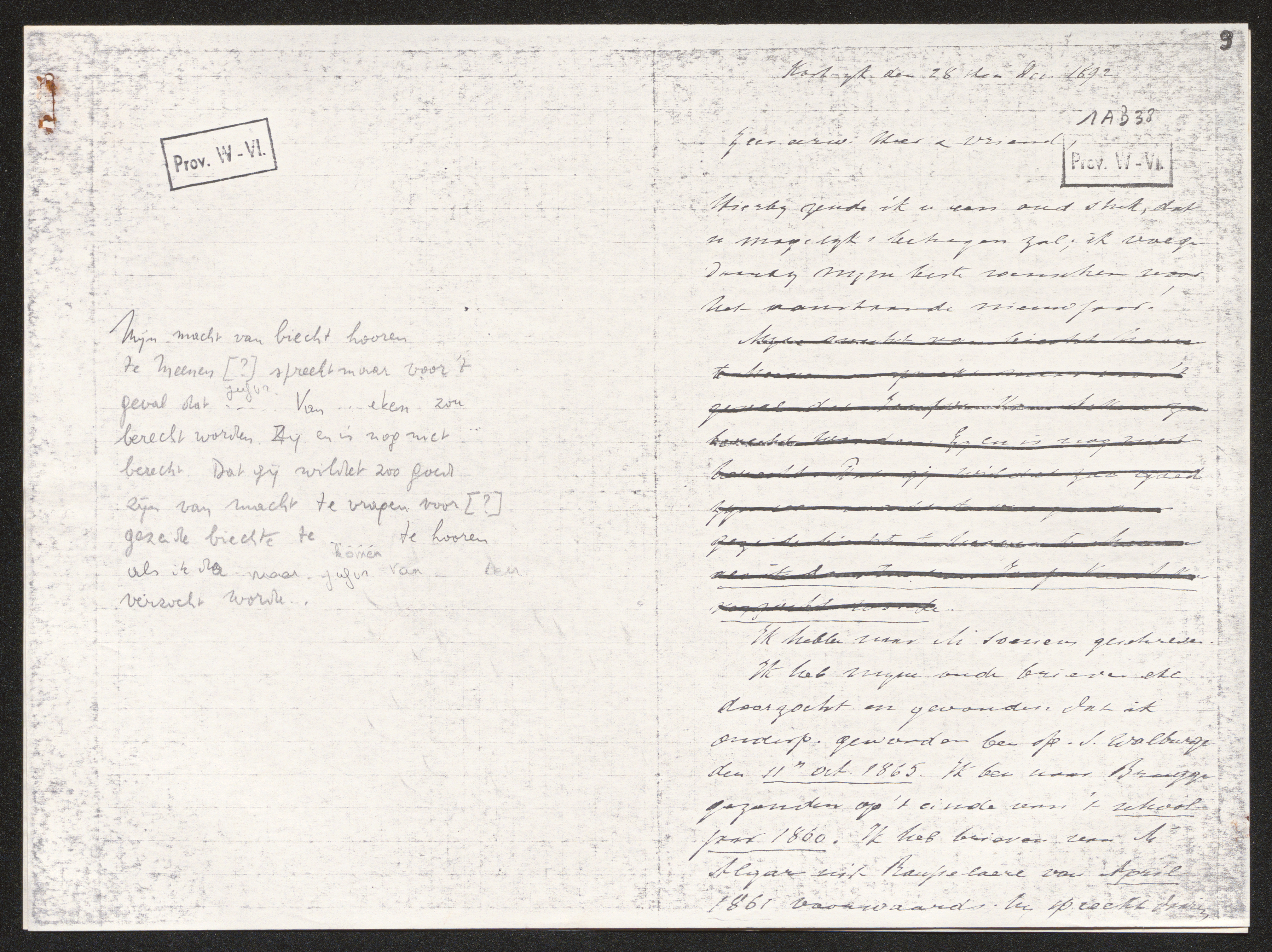 Mijn macht van biechte hooren te Meenen en spreekt maar voor ‘t geval dat Joufvr. Van Ackere zou berecht worden. Zij en is nog niet berecht. Dat gij wildet zoo goed zijn van macht te vragen voor gezeide biechte te Meenen te hooren als ik daartoe van Joufvr. Van Ackere verzocht worde.[2]