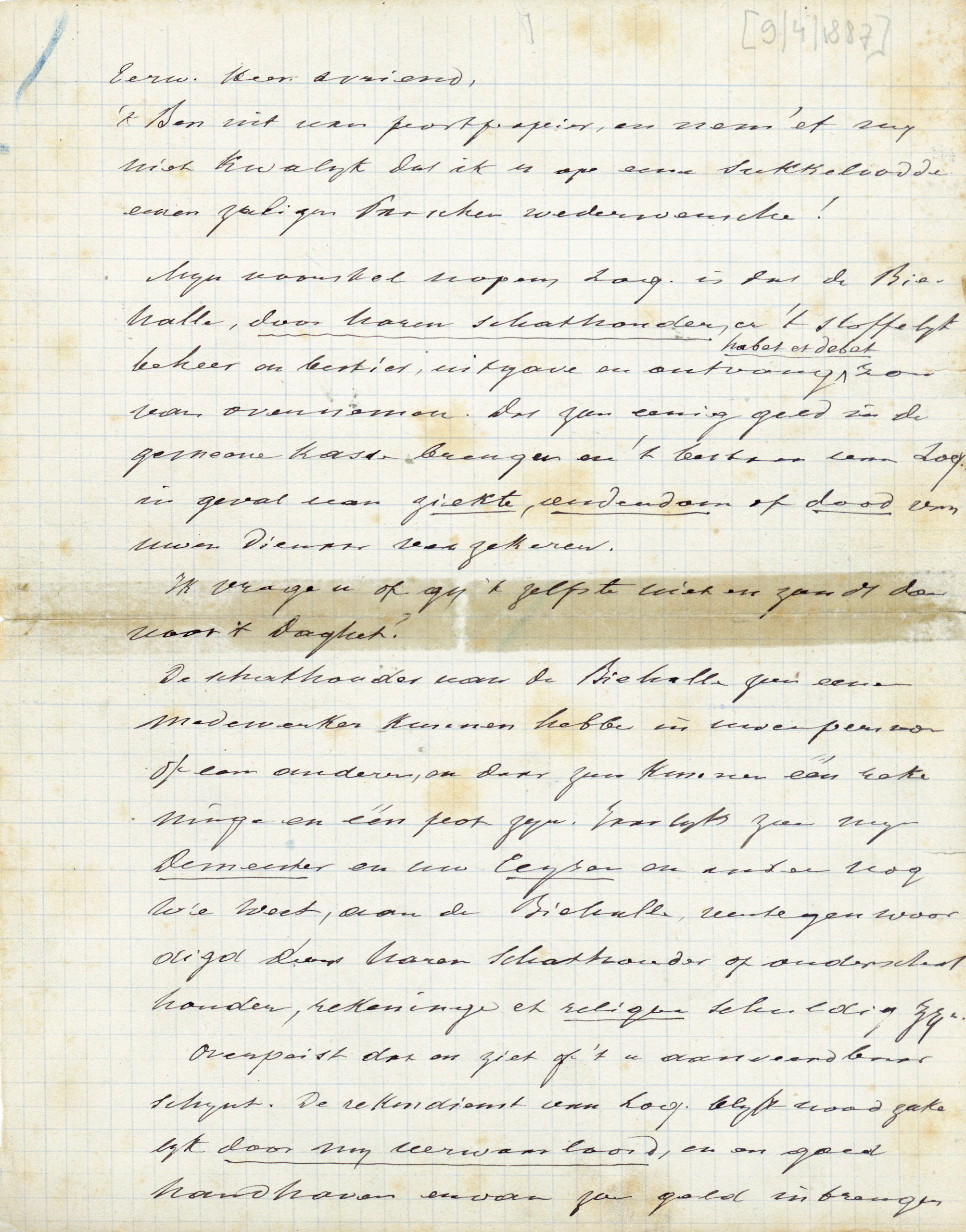 De schathouder van de Biehalle zou eenen medewerker kunnen hebben in uwen persoon of een anderen, en daar zou kunnen één rekeninge en één pot zijn. Jaarlijks zou mijn Demeester en uw Ceysen en anderen nog wie weet, aan de Biehalle, vertegenwoordigd door haren schathouder of onderschathouder, rekeninge et reliqua[2] schuldig zijn.