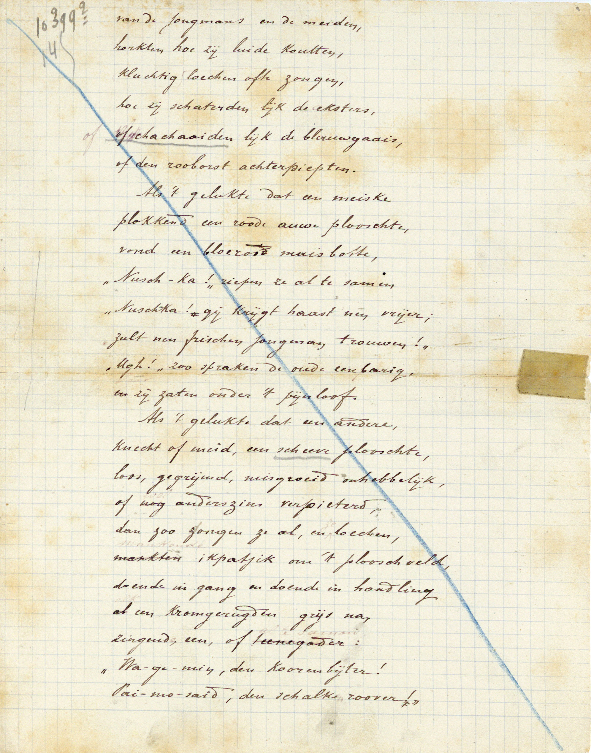 'k Ben uit van postpapier, en nem 'et mij niet kwalijk dat ik u op eene sukkelvodde[1] eenen zaligen Paaschen wederwensche!