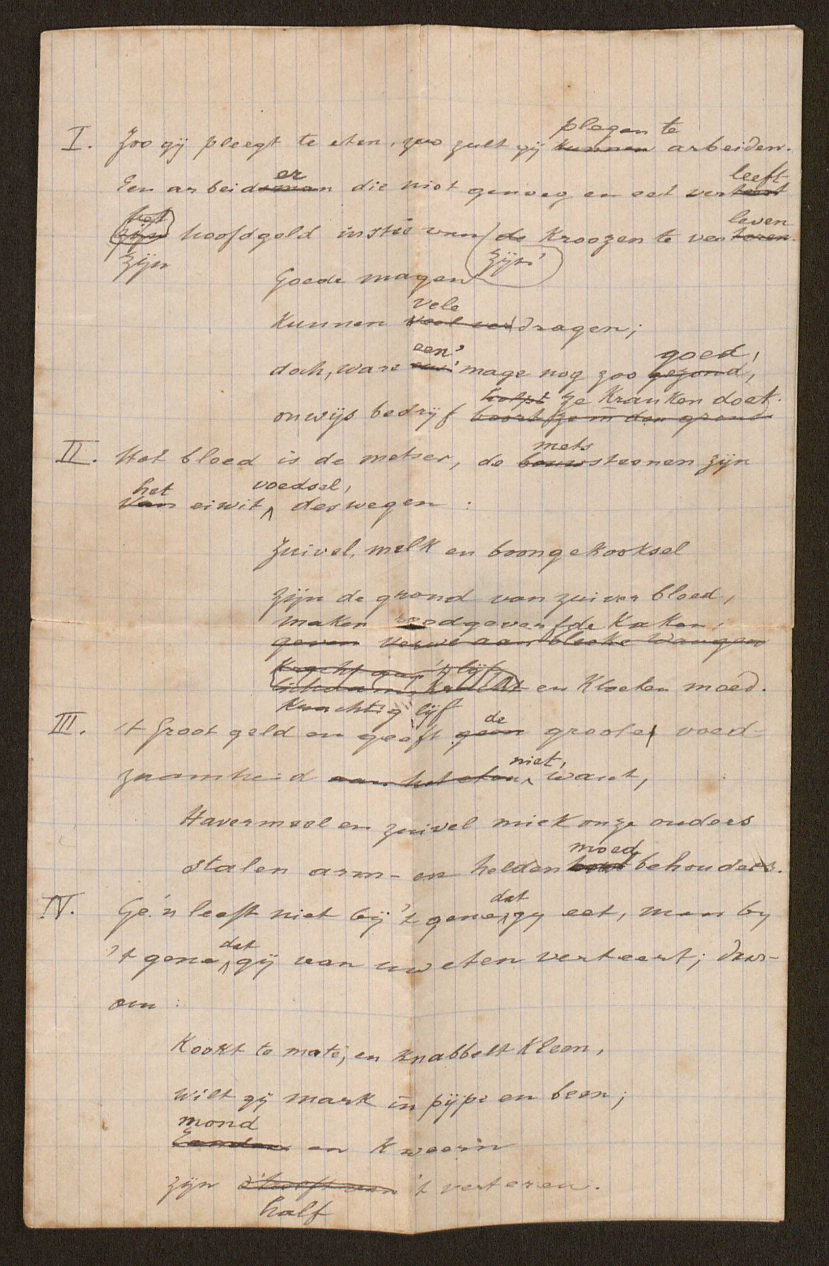 IV. Ge ‘n leeft niet bij ‘t gene dat gij eet, maar bij ‘t gene dat gij van uw eten verteert; daarom: