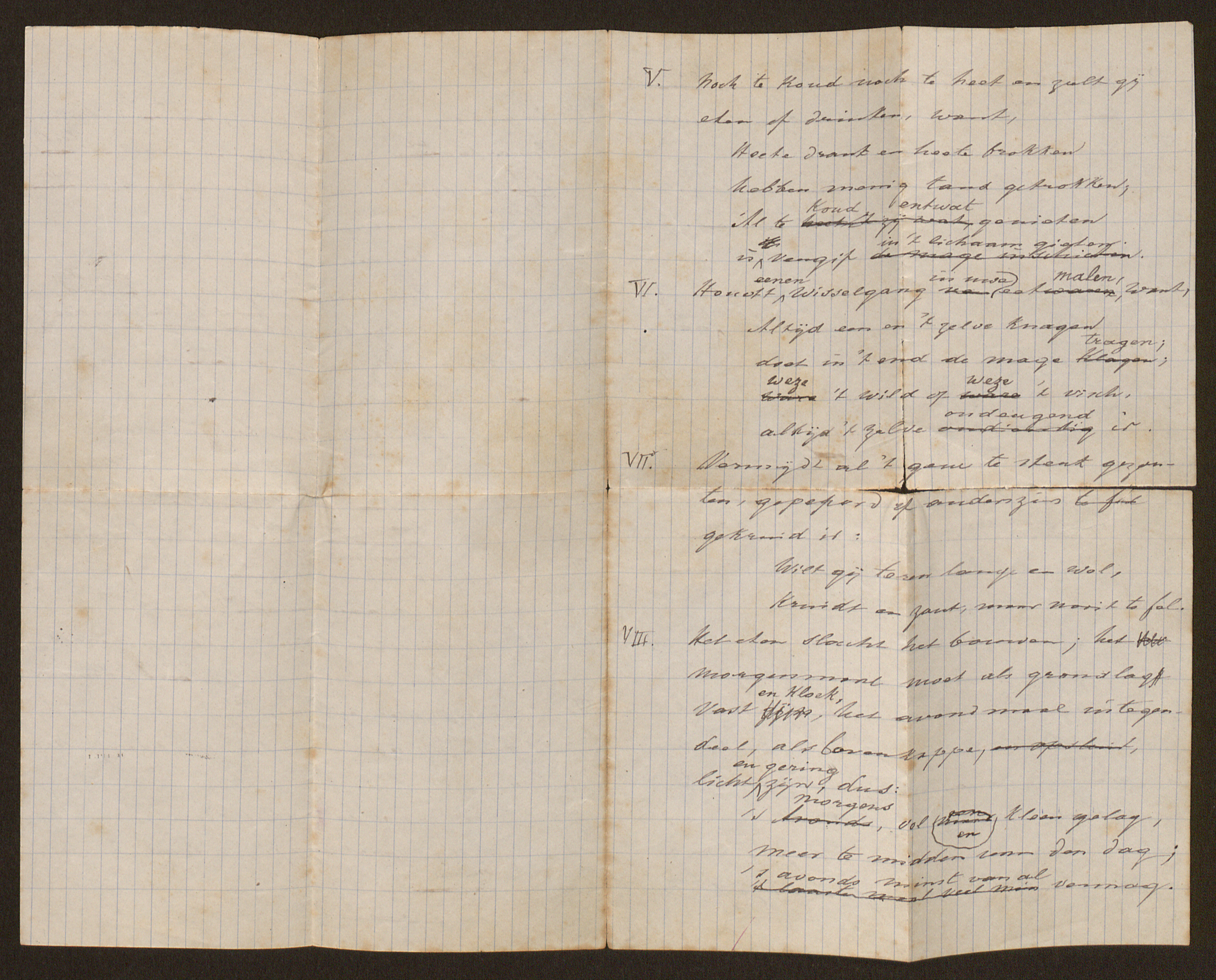 VII. Vermijdt al ‘t geen te sterk gezouten, gepeperd of anderszins gekruid is: