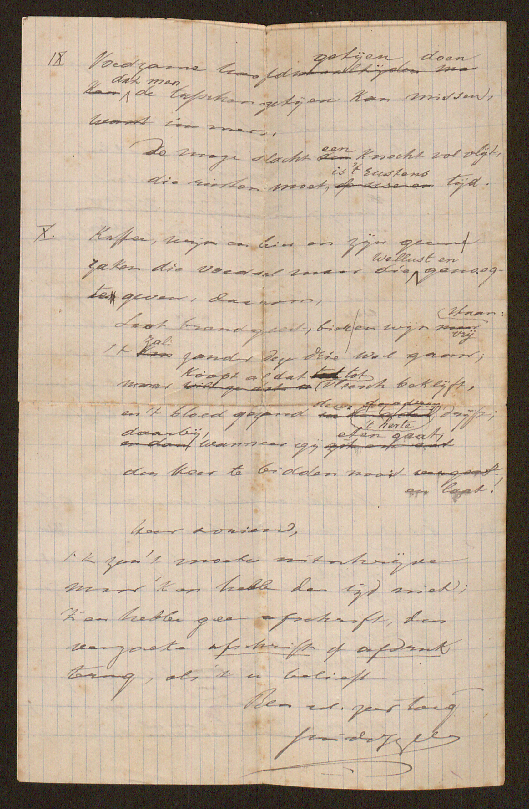 'k zou 't moeten uitschrijven maar ‘k en hebbe den tijd niet; ‘K en hebbe geen afschrift, dus verzoeke afschrift of afdruk[6] terug, als ‘t u belieft