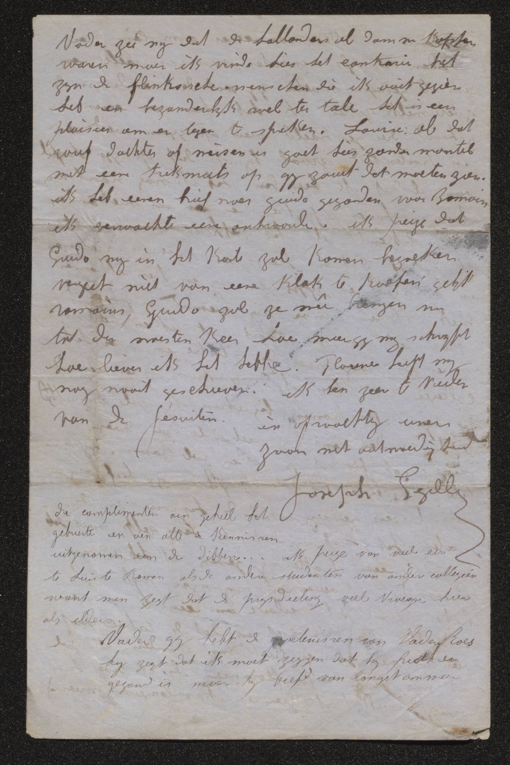 Toevoegingen op zijde 1 links in de bovenrand: Aan Vader en Moeder Gezelle ; idem rechtsboven bijgeschreven onder dag en maand: (1861) (inkt, beide hand P.A.)