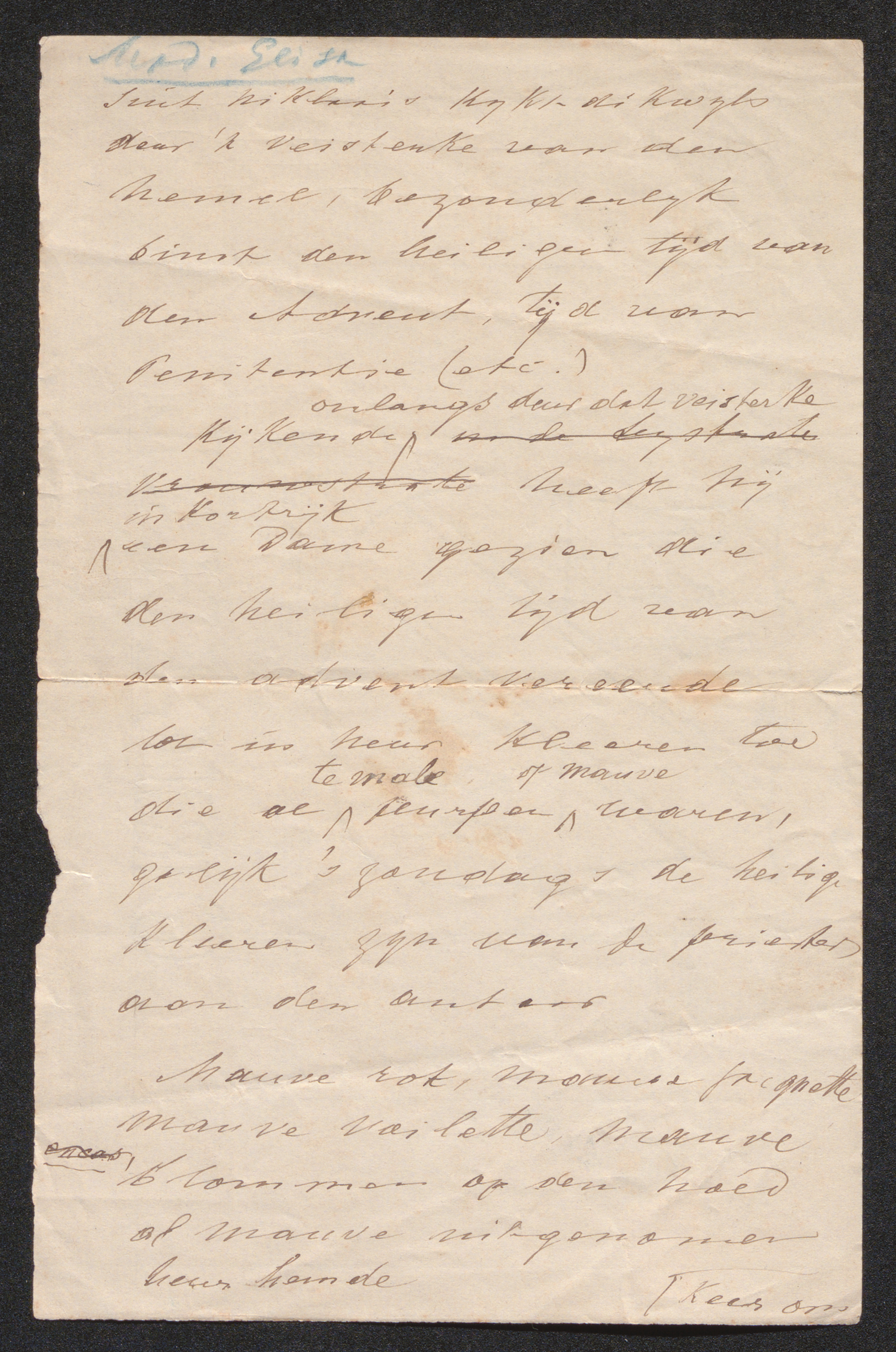 [1] Kladversie van een brief van Guido Gezelle aan Elisabeth Vanden Broeck. Aanspreking later bijgeschreven door Guido Gezelle in blauw potlood. Elisabeth Vanden Broeck was geboren in Sint-Niklaas.