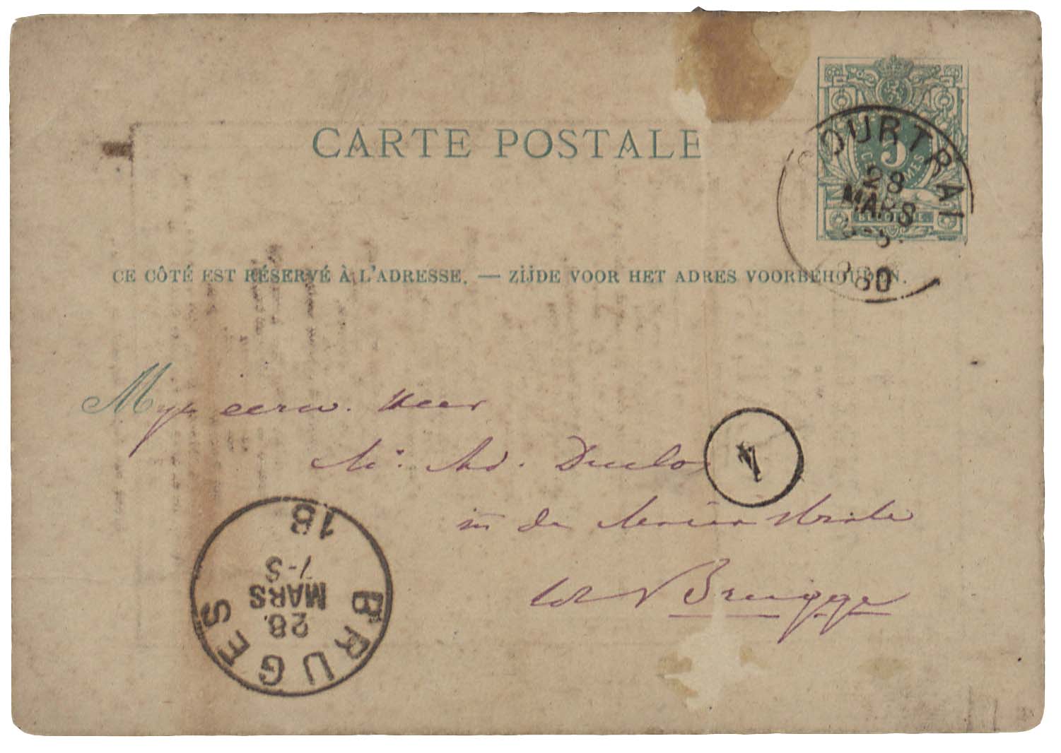 AnnotatieDatum en plaats gereconstrueerd op basis van poststempel. Adressant gereconstrueerd op basis van handschrift.